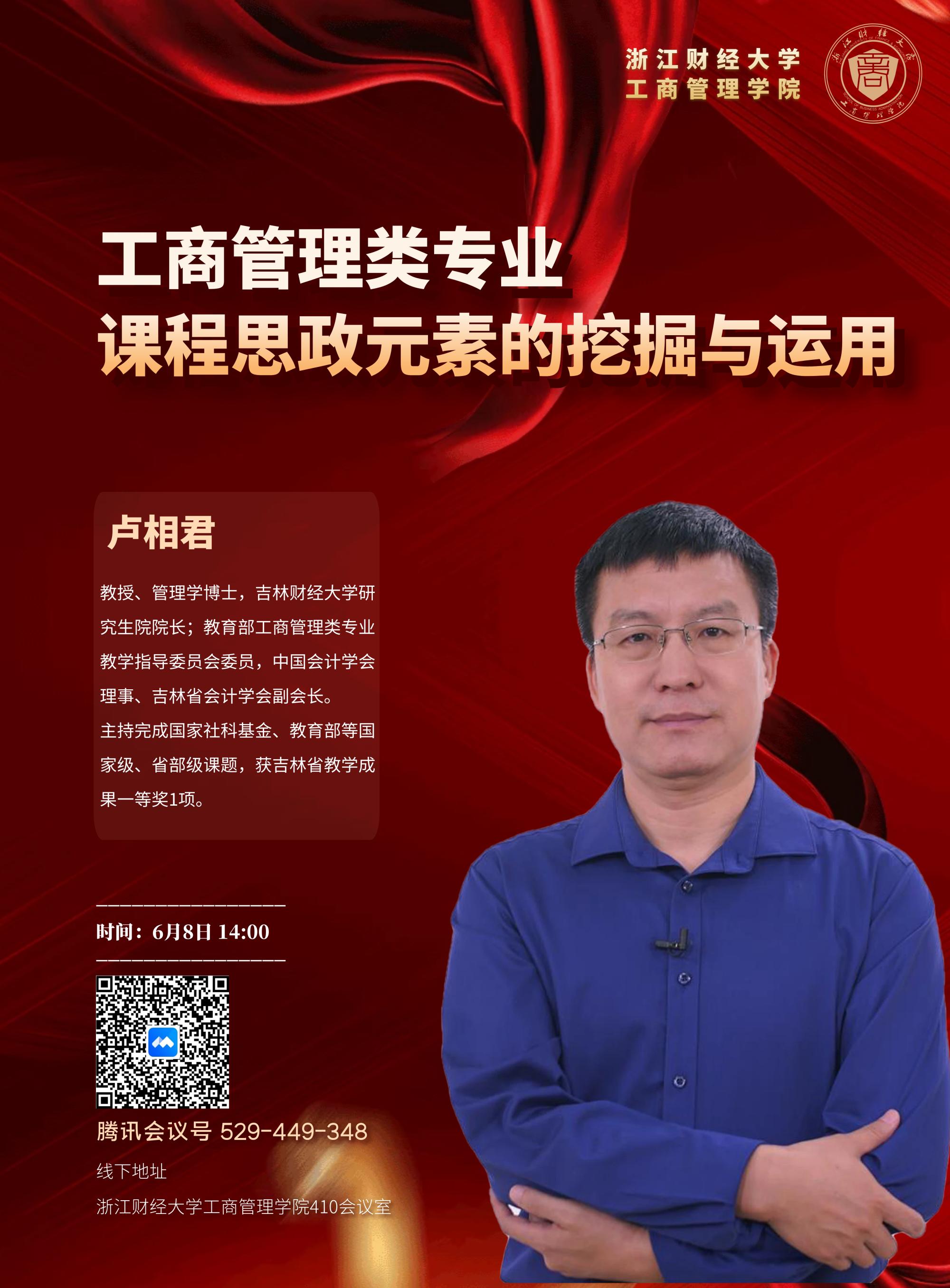 [课程思政讲座预告]卢相君:工商管理类专业课程思政元素的挖掘与运用