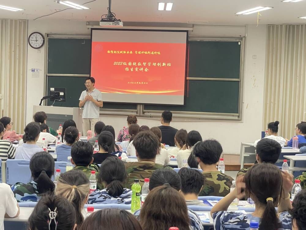 为增进新生学子对数智管理创新班的了解,9月4日晚,工商伟德国际1946(MBA学院)在学院楼115举办2023级国锐数智管理创新班招生宣讲会。工商伟德国际1946(MBA学院)院长王建明,工商伟德国际1946(MBA学院)数智管理创新班项目执行人沈渊,23国锐数智管理创新班班主任应瑛,辅导员都林、周依凡,班导卢佳璐,以及2023级工商管理类全体新生参加了本次宣讲会,会议由沈渊主持。