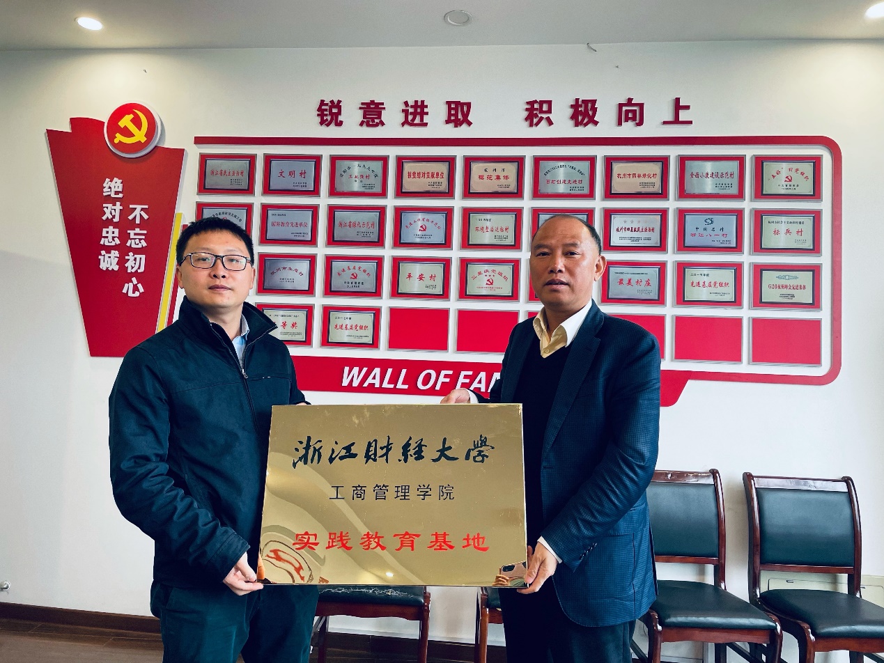 2022年3月22日上午,我院与富阳区春江街道八一村举行共建实践教育基地挂牌,学院春江街道办事处挂职教师丁军老师与八一村村委组织书记、村委会主任羊少剑书记等代表出席了本次挂牌仪式。