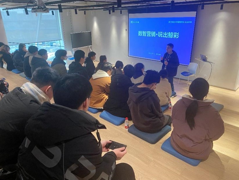 为了让《销售管理》课程贴近现实,激发大三同学们在学习上的探索热情,增加对于数智营销领域的前沿认知,同时寓教于学,丰富课堂之外的互动实践形式,12月12日伟德国际1946黎静仪老师组织伟德国际1946销售管理课的同学们来到每日互动公司(个推)进行参观。在公司高级副总裁刘宇的介绍引导下,深入地了解了公司的品牌理念以及技术创新,并在实地参观中近距离地感受到了科技领域在当下的蓬勃发展,加深了同学们对于数智科技产业的认识。
