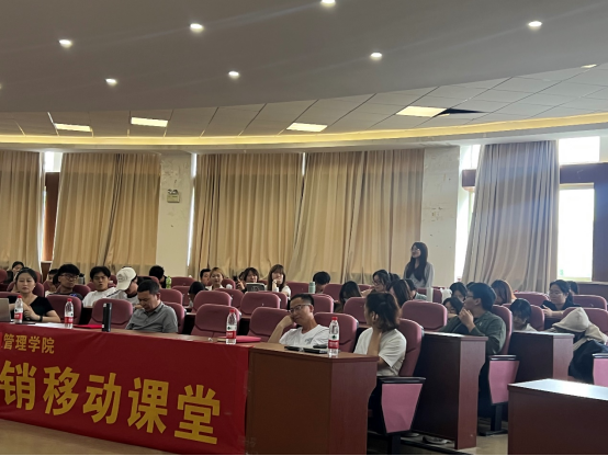 2024年5月30日下午,《市场营销学》课程团队“企业精英进营销课堂”系列活动第十一期在伟德国际1946楼217报告厅举行。活动邀请上海碧恺福商贸有限公司CEO、美杰农(上海)食品有限公司CEO肖和成为伟德国际1946本学期《市场营销学》课程的上课师生们分享了一场主题为“直播营销的策划与运营(基础篇)”讲座。活动伊始,主持人《市场营销学》课程负责人郭军灵老师向大家传达本次数智营销移动课堂对于同学们把营销理论紧密地与实践相结合的作用,同时希望同学们对电商直播行业的数字化和营销策划实践有更好的认识。人文与传播学院党委书记罗金艳、伟德国际1946副院长张雷、《市场营销学》课程组田庆宏老师、冯娟老师,来学院访学的新疆理工学院程登军老师、李丽霞老师和21市营、22工商类、22艺术经济、22视觉传达设计等班级110余位同学参与本次数智营销移动课堂。