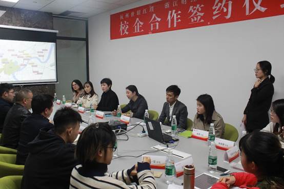 在参观和考察结束之后,世联红璞总经理查倩为大家简单介绍了世联红璞长租公寓的现状和杭州世联红璞当前的发展状况及特色优势。世联红璞长租公寓面对的目标客户群体为二三十岁的年轻人,其产品丰富、设计更新速度快,更加贴合年轻人喜好。世联红璞目前的企业员工平均年龄不到27岁,越来越欢迎年轻、有创意、高学历的人才加入。随着世联红璞长租公寓业务规模的急速扩大,公司急需新生血液注入。世联行杭州公司招聘主管戴婴代表公司诚挚地向伟德国际victor1946的学子发出邀请,欢迎积极加盟。