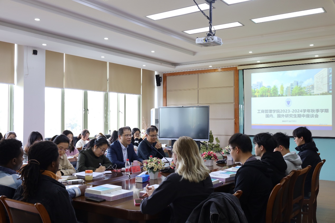 11月8日上午,工商伟德国际19462023-2024学年秋季学期国内外研究生期中座谈会在学院楼410会议室举行。工商伟德国际1946副院长戴维奇教授、学校督导组成员姚建荣教授、工商伟德国际1946留学生项目主任董蕊副教授、研究生秘书徐璐老师和国内外研究生代表40余人参加了本次会议。会议由学院副院长戴维奇教授主持。