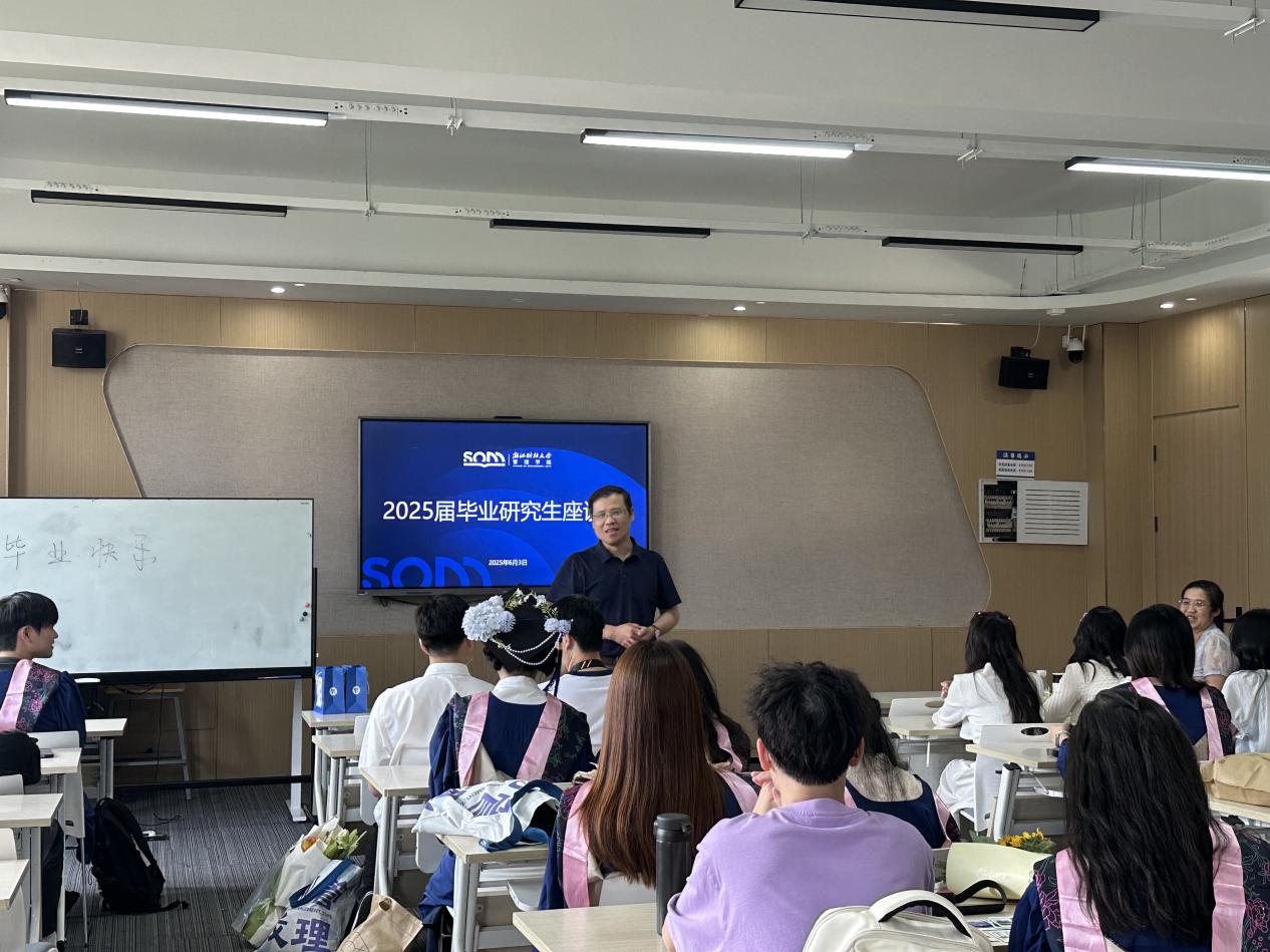 6月3日下午,伟德国际19462025届硕士研究生毕业欢送会在学院楼411教室顺利举行。学院副院长戴维奇、研究生教学秘书徐璐、研究生辅导员沈晓云,以及全体毕业研究生欢聚一堂,共同见证这一难忘时刻。