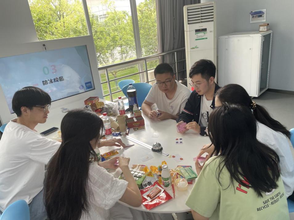 本次活动设置了丰富的互动环节。首先进行的“组内游戏”环节,以别开生面的“零食外交”拉开序幕,同学们分享了精心准备的家乡特产、创意零食,现场气氛温馨活跃。“最受欢迎零食”的投票与趣味“零食版石头剪刀布”更添欢乐,迅速拉近了组员间的距离,随后的“破冰牌局”进一步巩固了小组内的情谊。
