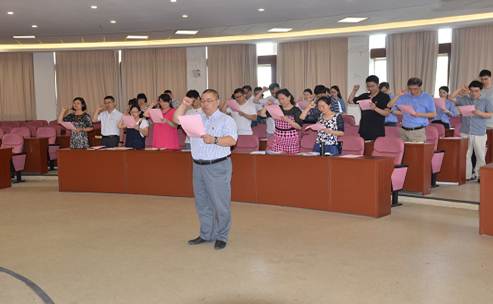 会议最后,全体党员在黄卫华书记的带领下重温入党誓词,大家在入党誓词中,重温了当年入党时的意气奋发与坚定信仰。