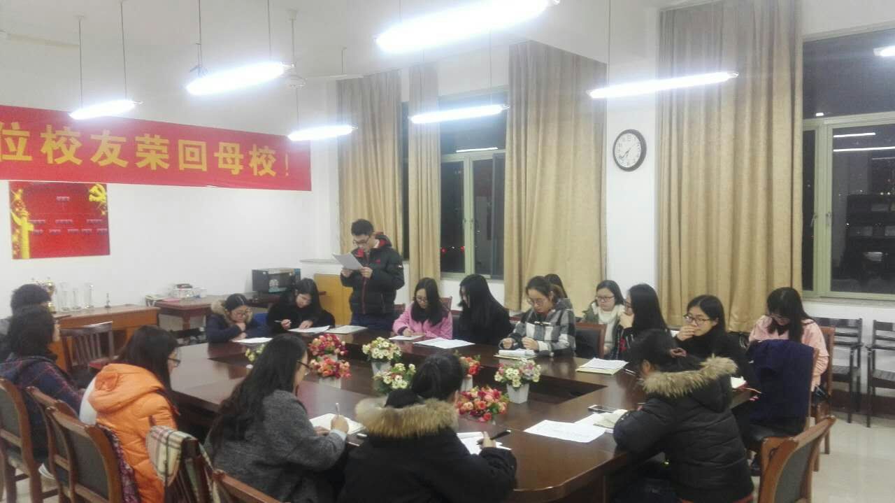 12月10日晚,学生第三党支部在学院楼416教室召开了党员发展转正大会。会议由支部书记俞佳老师主持,第三党支部的党员、预备党员参加了本次会议。会议主要听取了4名预备党员的转正申请及7名发展对象的入党志愿,并作出投票表决。