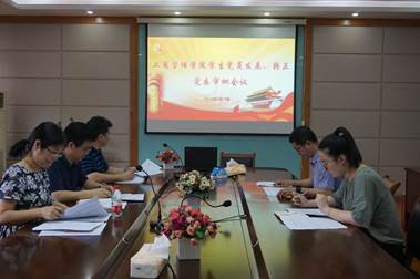 6月19日下午4点,工商伟德国际1946党委于学院楼410会议室召开2018上半年学生党员发展、转正审批会议。学院院长、党委副书记董进才,党委副书记、纪委书记谢敏,副院长、党委委员倪文斌,工会主席、党委委员郭军灵,党委秘书出席了会议。会议由谢敏副书记主持。
