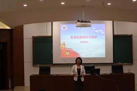 在入党积极分子学习班中,学院党委书记黄卫华以“端正入党动机,树立远大思想,以实际行动早日加入中国共产党”为主题,结合党章党规要求,回忆了共产党人的崇高的初心和使命,赞叹了中华人民共和国成立七十年来我国发生的伟大奇迹;学院党委副书记、纪委书记谢敏详细讲述了党员的发展程序和要求,着重强调了党员发展的原则性和严肃性,希望青年人在严格的入党流程中不断坚定自我的初心;校纪委办公室副主任、监察处副处长罗金艳以“谈廉说纪”为主题,通过真实的案例,批判了某些腐败党员的违法乱纪行为,并强调要引以为戒、不忘初心,不断提升思想道德意识,切莫以身试法;校党委组织部、统战部副部长段雪辉老师以“红色主题--中国共产党建党的那些人和事”,回溯了中国共产党的建党历史,并敬告广大青年要坚定理想信念,牢记共产党人的初心和使命;最后,法学院党委书记朱丹讲述了“中国共产党的光辉历程”,重点讲述了党的光辉历程和风雨岁月,在对党史的讲解中树立了青年人的初心。