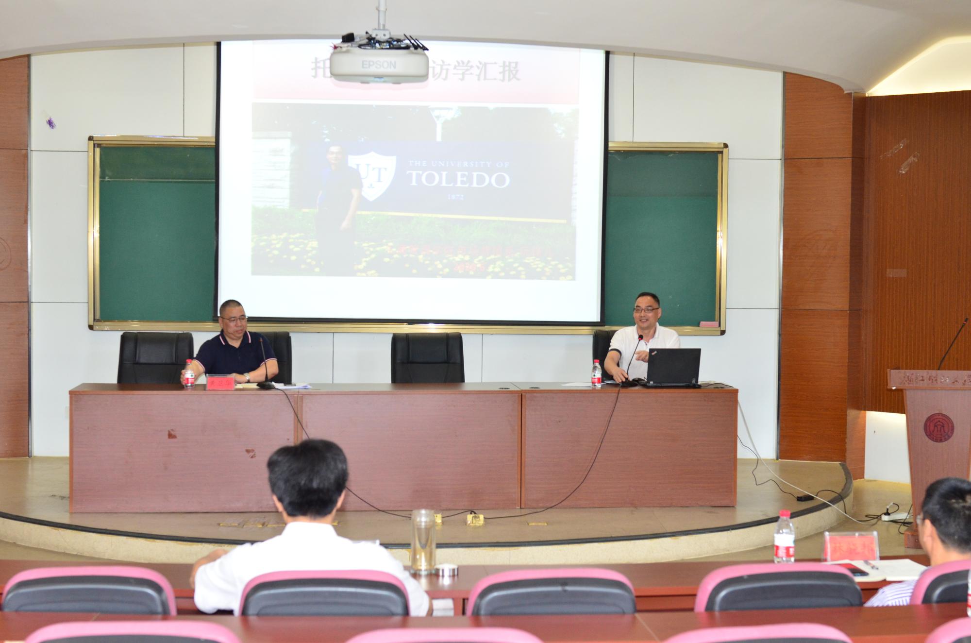 党员教师阮锋儿在报告会上谈了他在美国托莱多大学访问期间的生活、学习和研究。他庆幸的说,现在美国疫情这么严重,幸好自己回来的比较早。作为一名中国人,我很骄傲;作为一名党员,我更加要时刻牢记自己的身份和使命。李晓超和唐春晖老师也分别介绍了自己在范德比尔特大学和伊利诺伊大学的学习和研究情况,她们在报告中,都不约而同的谈到的感悟就是:回到家真好,还是中国的制度好。