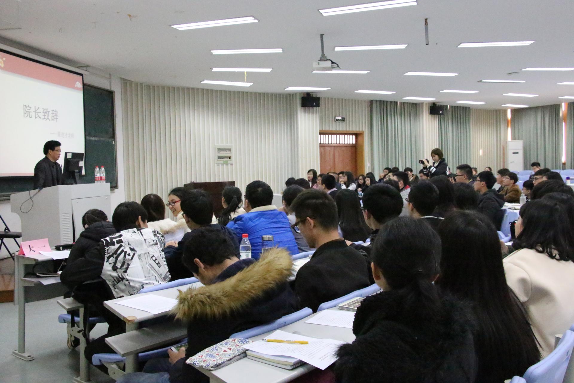 在院长与党委书记致辞结束后,刘远琳老师围绕切实加强青年思想引领工作、不断拓展共青团服务青年工作、扎实推进团学组织建设这三个方面讲解并强调共青团的工作要点。胡星平老师则介绍了文明寝室建设,学风建设和班级建设这三方面近期的具体安排,并希望各学生干部齐心协力做好本职工作,在新的领导下在新的学年有新的开始。