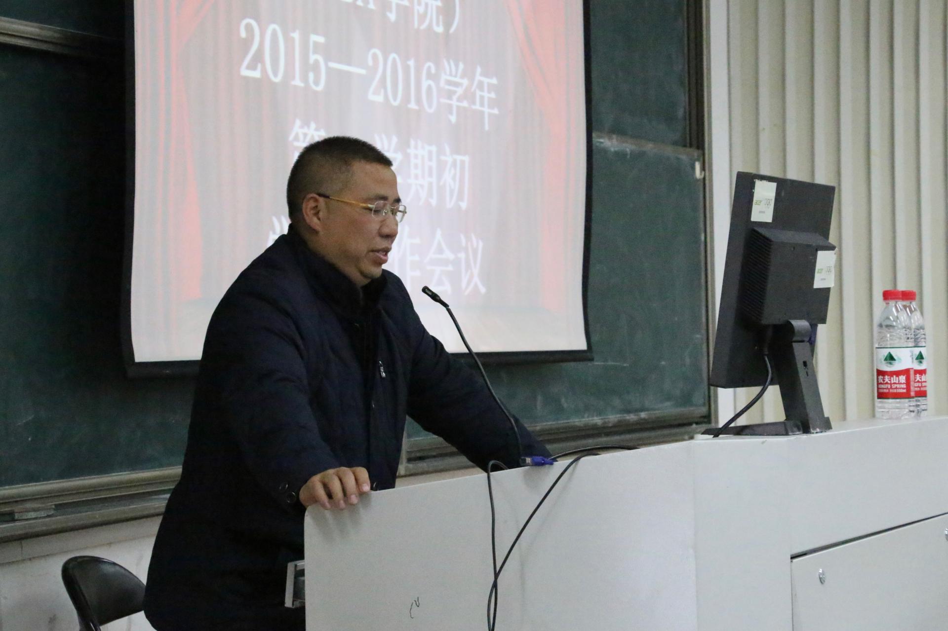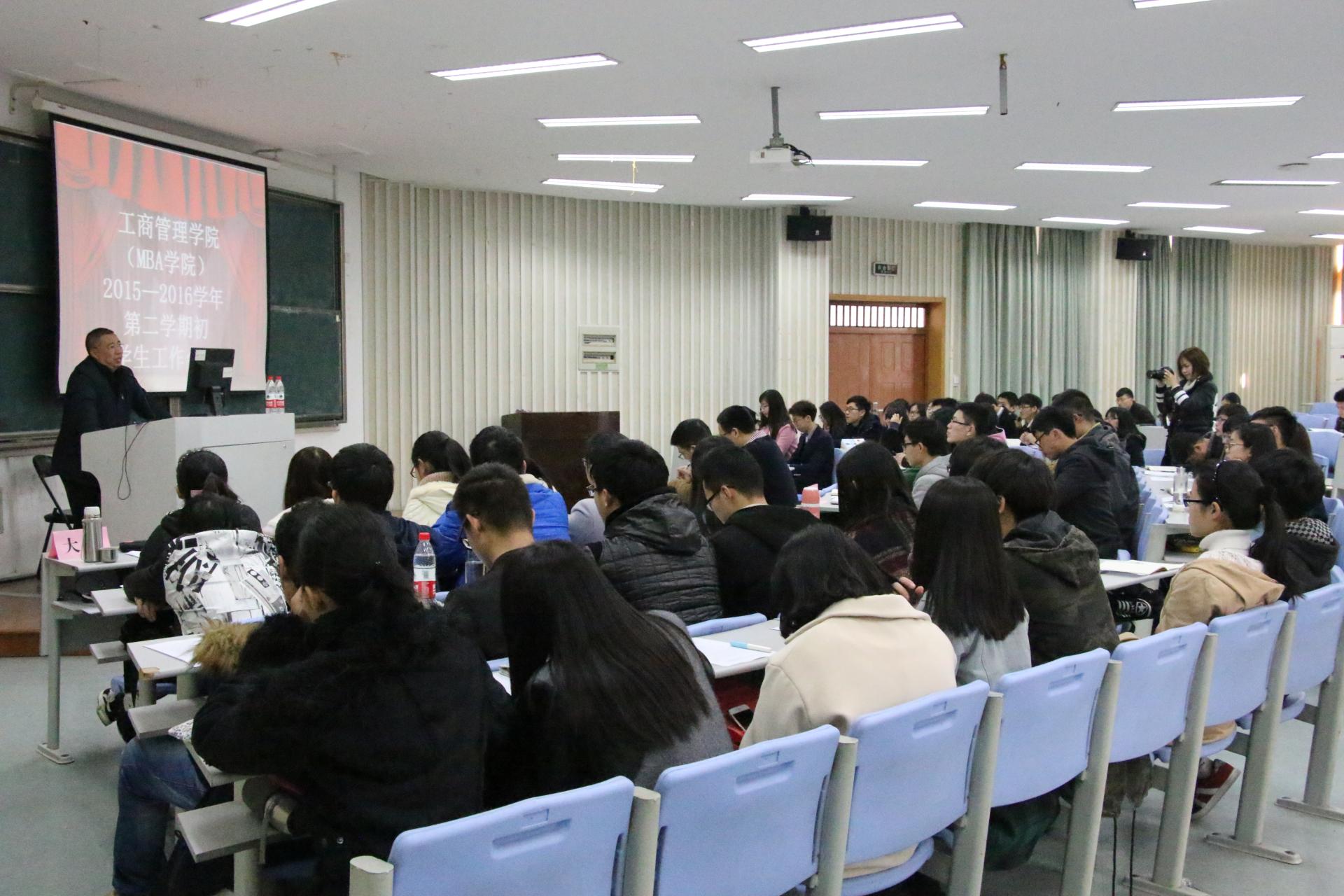 3月1日下午3点,我院在115教室召开2015—2016学年第二学期学生工作会议,会议开始前胡星平向在座学生干部隆重介绍了工商管理学新任院长董进才老师和新任党委书记黄卫华老师的到来。