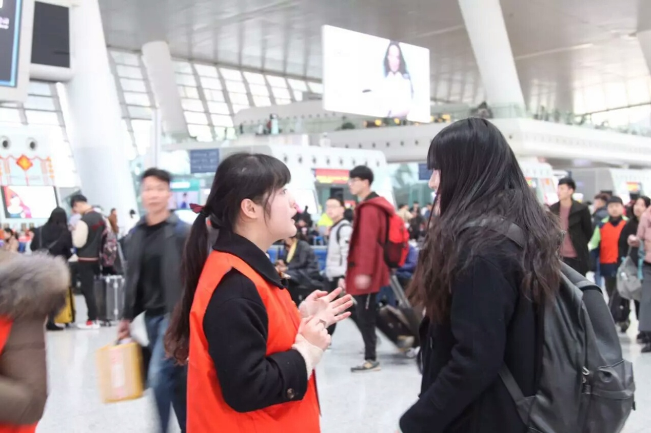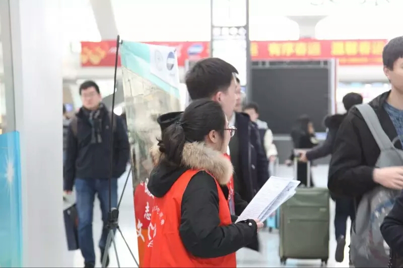 春运期间,旅客出行是否文明在一定程度上反映着国人素质的高低,“红马甲”们为此进行了文明出行宣讲活动,他们热情地向旅客分发宣传手册,并邀请旅客们在文明出行签名墙上留下自己的姓名,承诺以身作则,共同践行和倡导文明出行。志愿者们为做出签名承诺的乘客们送上了中国结,希望借助其中的寓意,向旅客传达平安出行的祝福。