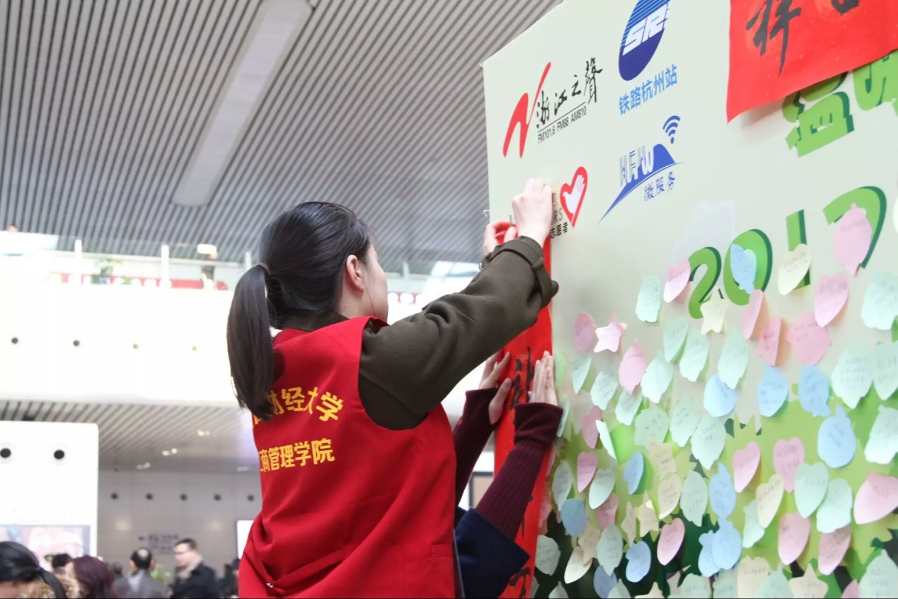 G20期间,无数的志愿者用他们的优秀的服务和温暖的微笑给世界留下了深刻的印象。步入后G20时代,杭城志愿的余热还在继续。进入春运后,杭州火车东站已经变得熙熙攘攘,而在众多的回家旅客中,有一批“红马甲”显得格外亮眼——他们是来自伟德国际victor1946工商伟德国际1946的志愿者们。为了更好地服务旅客,保障春运,50余名志愿者经过有序的组织,在14、15日,开展了“暖心护杭·志愿财大”文明出行倡议志愿活动,用爱心为杭城增添温暖。我们的志愿还获得了领导和外媒的肯定,团中央青年志愿者工作部副部长黄英锋视察青年志愿者工作,与我们青志同学们亲切交谈,鼓励大家用服务诠释青春,行动践行梦想。