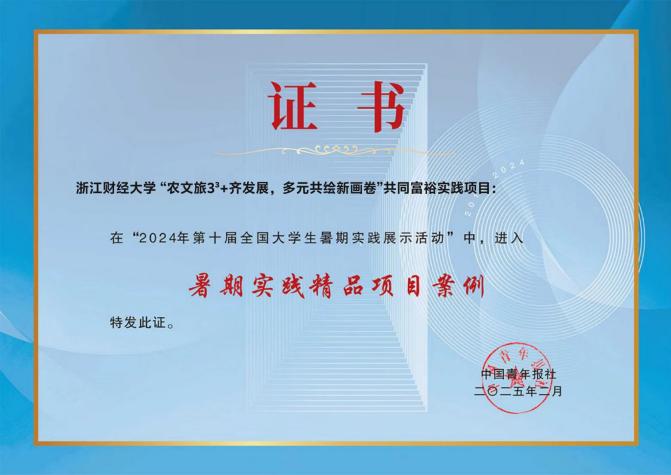 近日,由中国青年报社开展的“2024年第十届全国大学生暑期实践展示活动”评选结果出炉,我院“伟德国际victor1946‘农文旅33+齐发展,多元共绘新画卷’共同富裕实践项目”获评“2024年全国大学生暑期实践精品项目案例”称号。