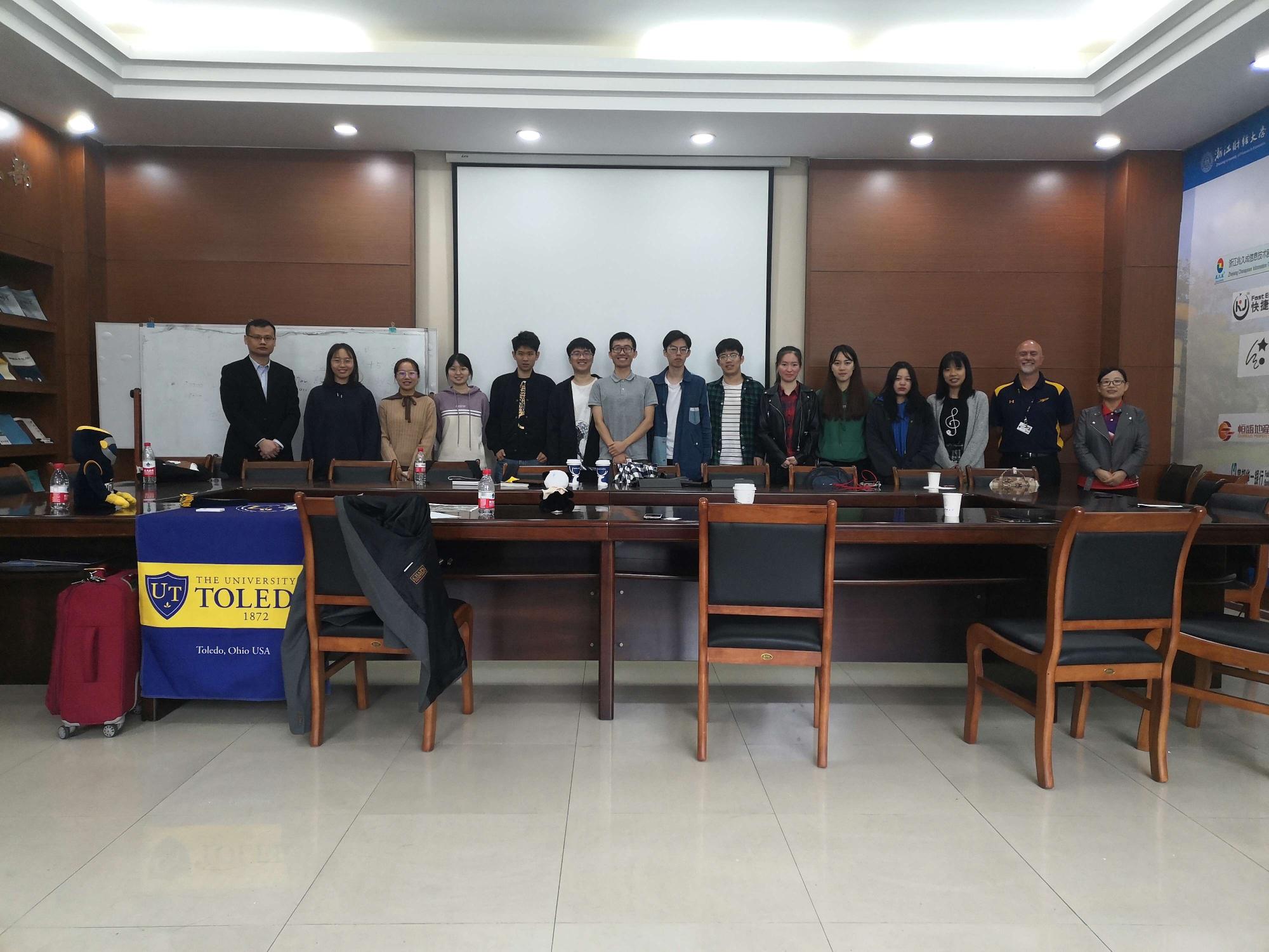 11月7日上午,工商伟德国际1946在5号楼218举办了2017级市营(中美)学生赴UT学习交流。会议由中美项目的中方负责人孔小磊老师主持,托莱多大学国际处Joe Guziolek,、辅导员梁磊老师以及13名2017级中美赴托莱多大学的同学参加。