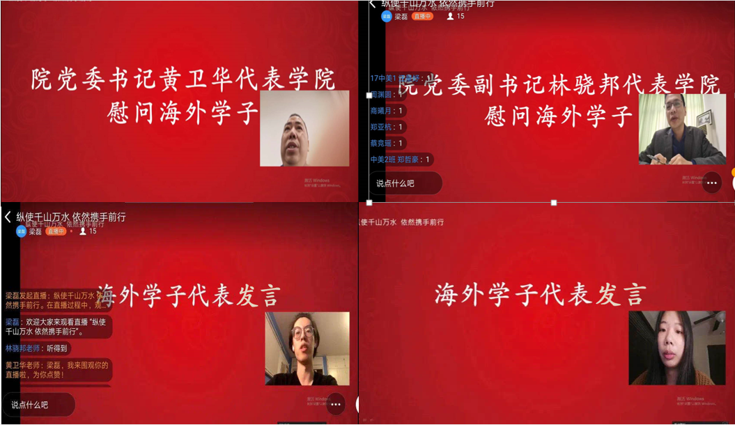 最后,两位17中美海外学子代表通过视频连线向学院领导和老师汇报自己疫情防控期间的学习、生活与身体状况。