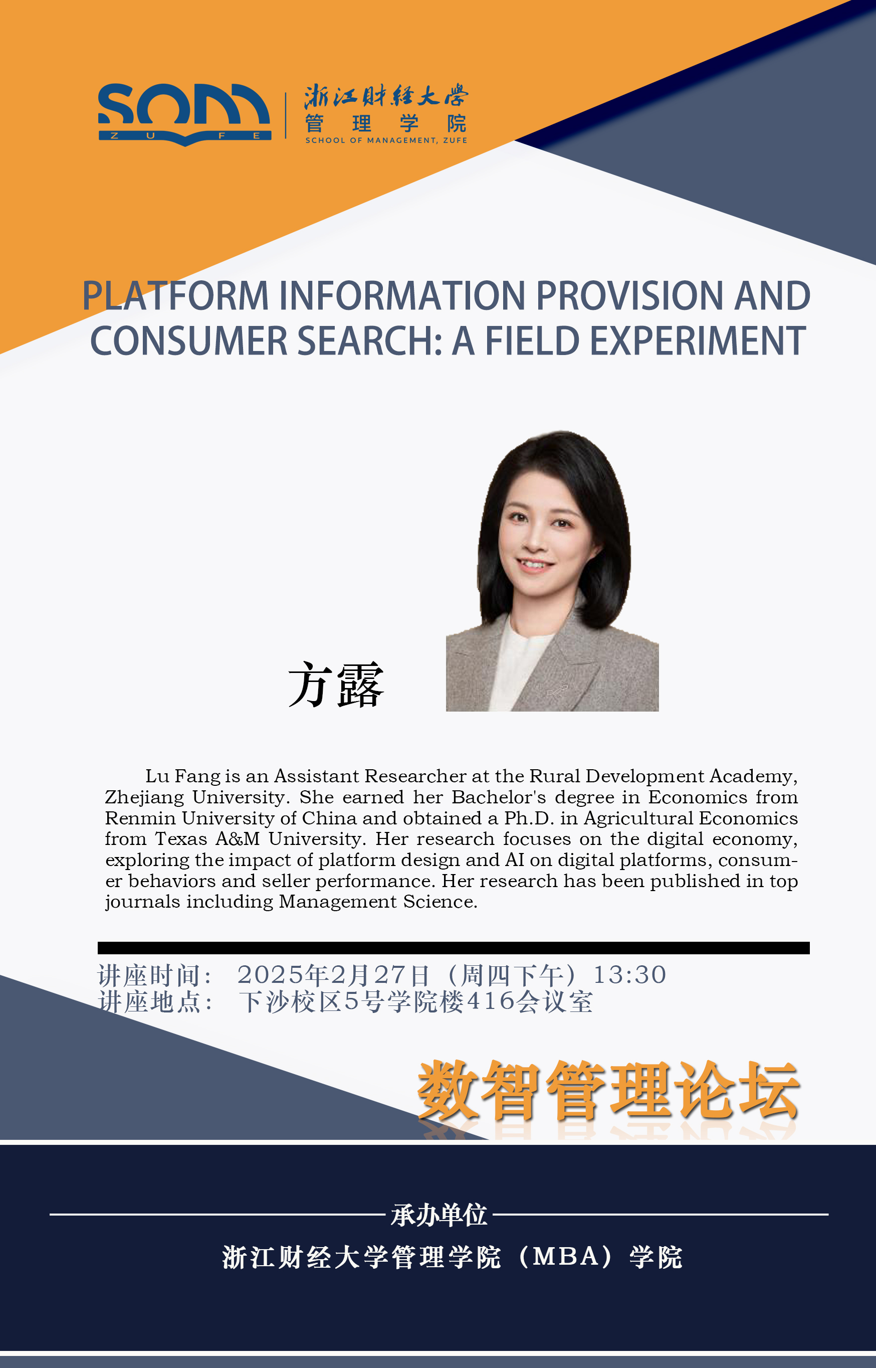 讲座题目:Platform Information Provision and Consumer Search: A Field Experiment