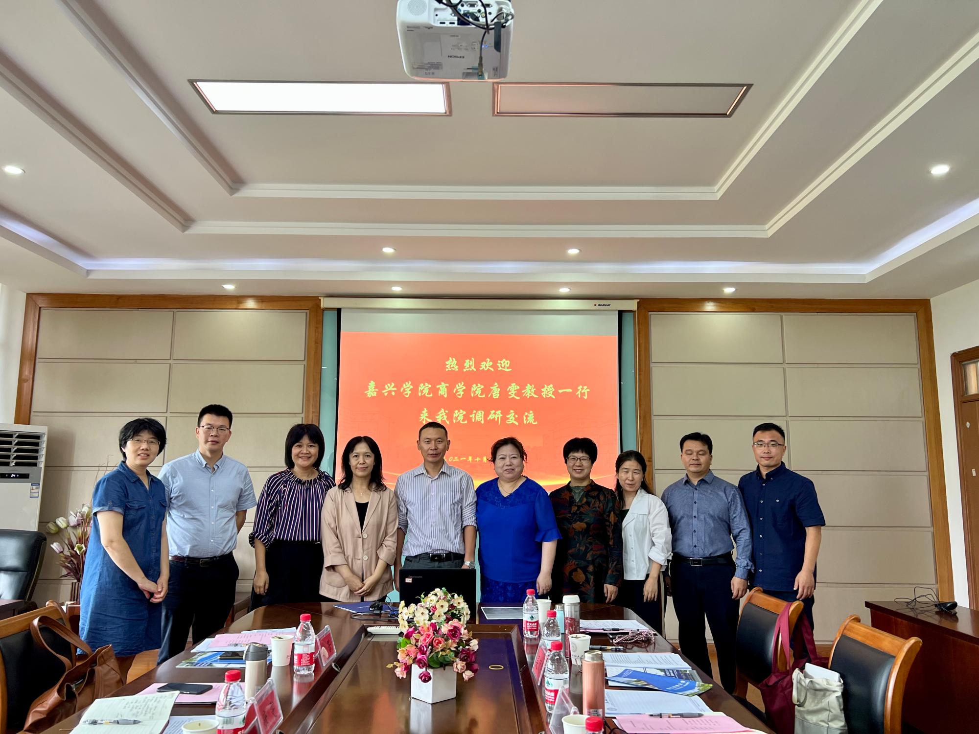 10月15日上午9点半,嘉兴学院商学院工商管理专业负责人唐雯教授、工商管理系主任林益忠、市场营销系主任方芳、副主任章璇一行四人来我院进行调研交流。张雷副院长、沈渊教授、企管系主任吴丽民、中美市营项目负责人王建国、院教学督导组组长郭军灵、国一流课程负责人邬雪芬教授等人参加了交流活动。