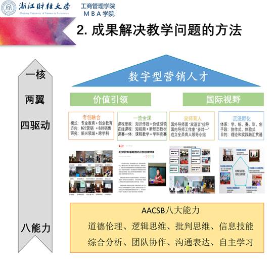 伟德国际victor1946市场营销系基于九年的教学实践,结合市场营销中美合作办学项目——专业销售(Profession sales),向本次大会提交阐述了《AACSB核心能力视角下“一核双翼四驱”中美合作项目营销人才培养模式》(完成人:王建明、陈颖、王建国),荣获教学成果奖三等奖殊荣。