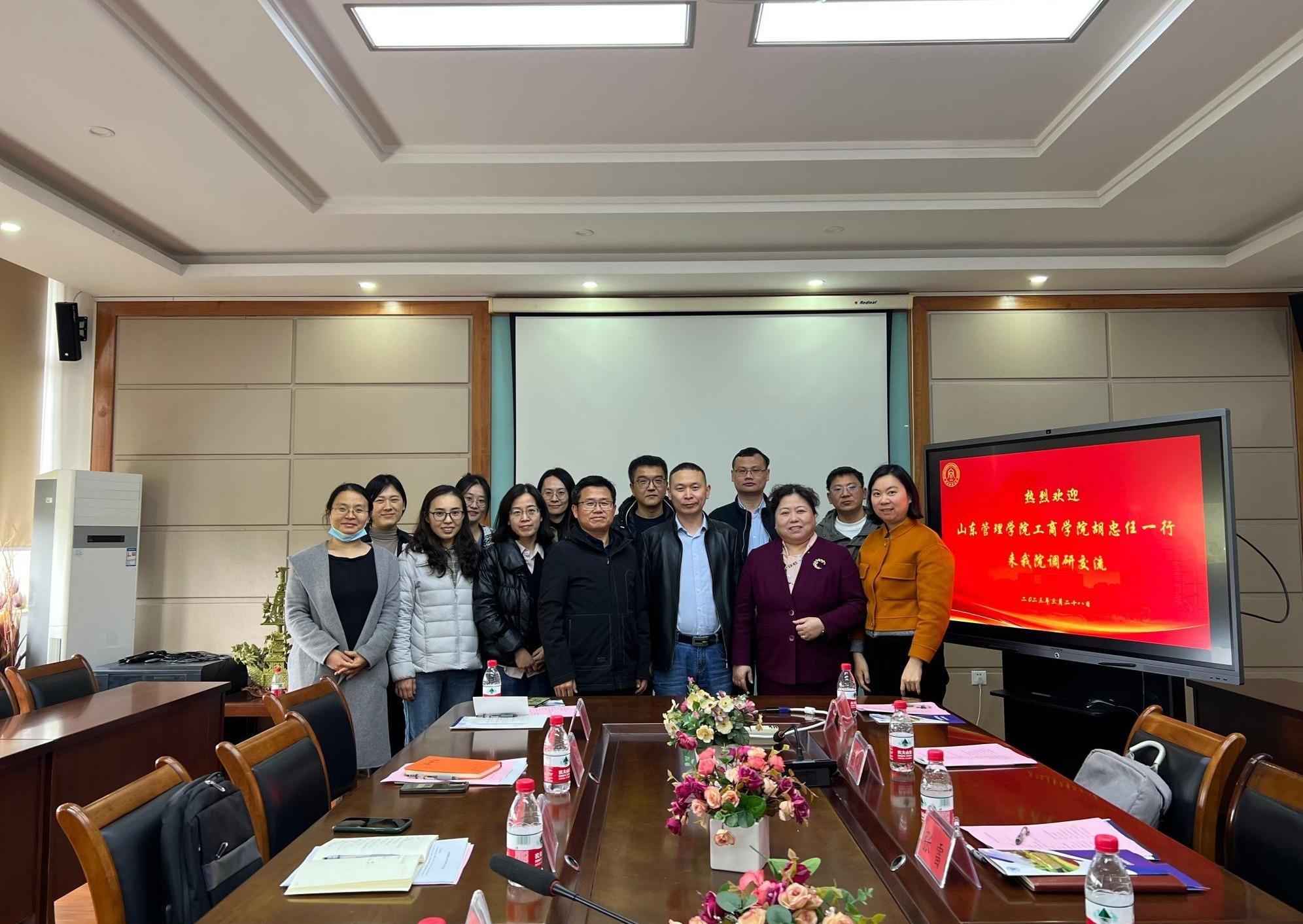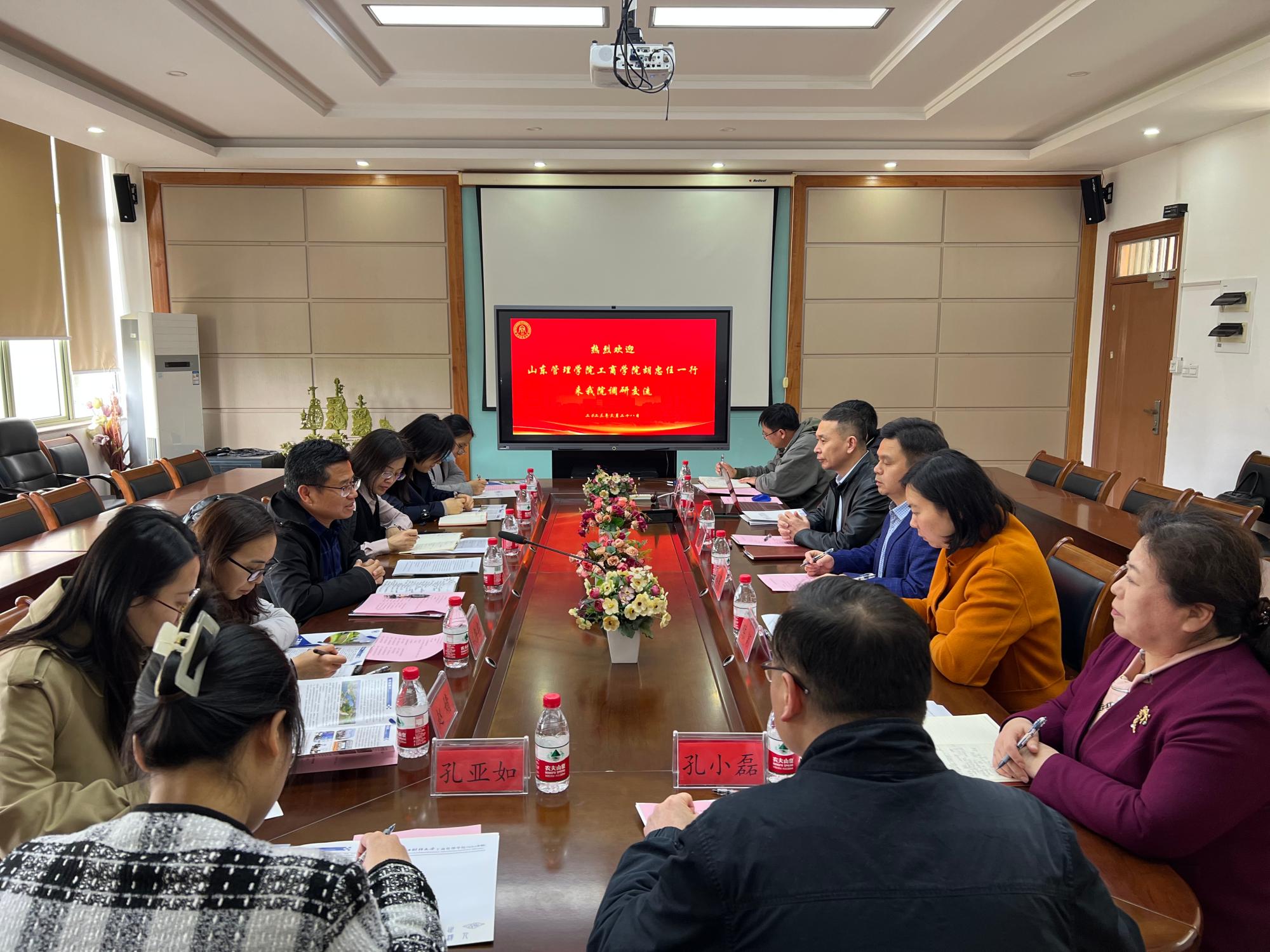 3月28日下午山东伟德国际1946工商学院院长胡忠任、市营系主任秦晓庆、物流系主任刘阳阳、工商系副主任刘冉冉和系部教师等一行等七人来我院进行调研,学院教学副院长张雷、院党委成员郭军灵、市营系主任陈颖、供应链管理系主任田家欣、数智管理创新班执行人沈渊、国际合作与认证中心主任孔小磊、供应链系教师周学广等教师在学院410会议室进行了交流。