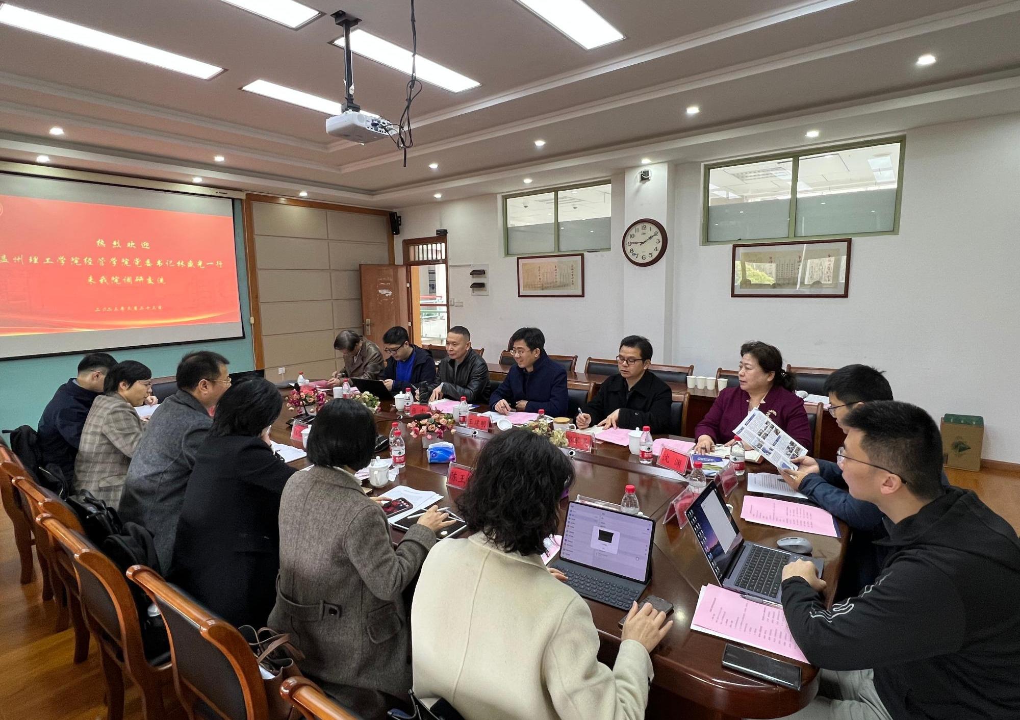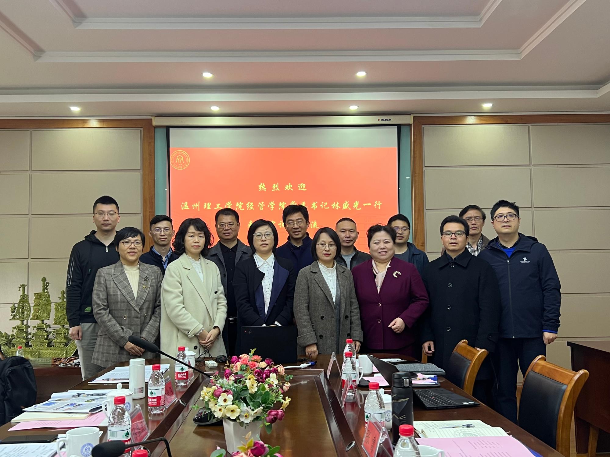 3月23日上午温州理工学院经管学院书记林盛光、党委委员董黎晖、工商系主任陈王伟和系部教师等一行等七人来我院进行调研,学院院长王建明、教学副院长张雷、院党委成员郭军灵、企管系教工支部书记包兴、数智管理创新班执行人沈渊、EDP培训中心主任黄纯、企管系教师赵昶等人在学院410会议室进行了交流。
