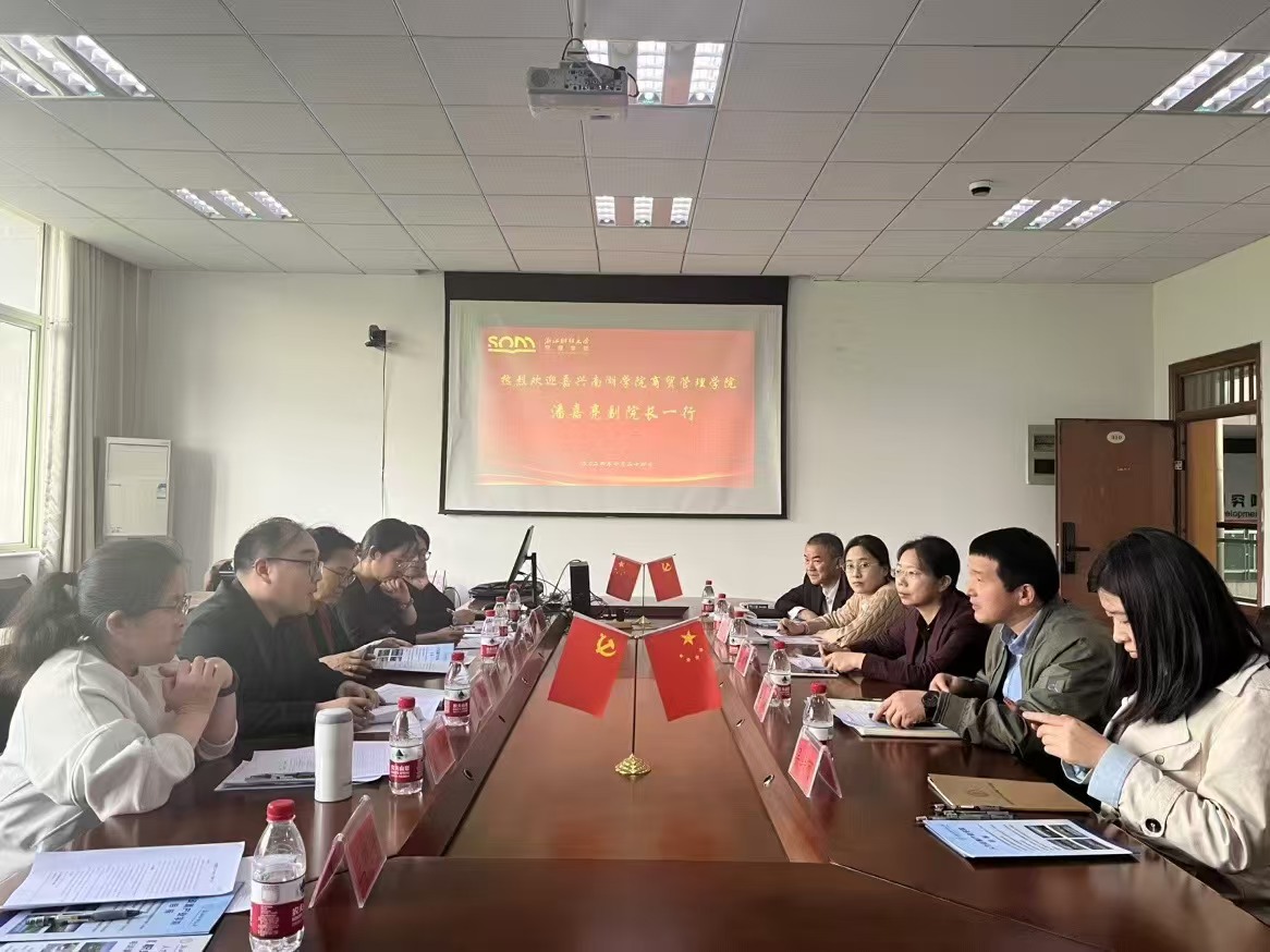 10月24日下午,嘉兴南湖学院商贸伟德国际1946副院长、人力资源管理专业负责人潘嘉亮一行6人来院调研交流。人力资源管理专业负责人吴道友教授、系主任张维维及多位专业老师热情接待了来访客人。