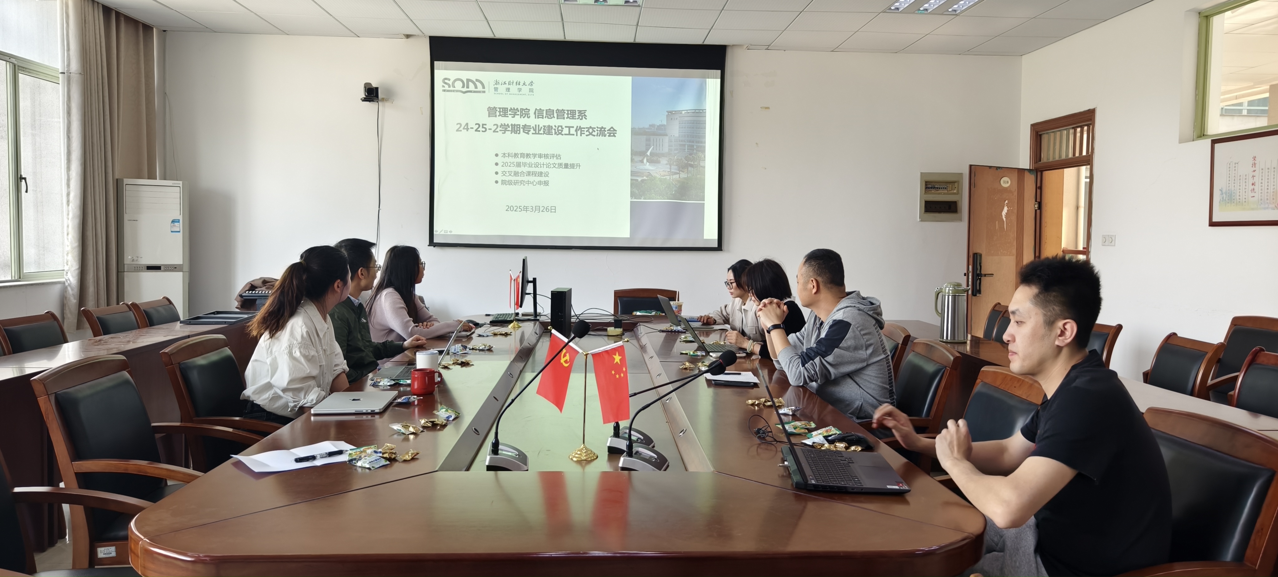 2025年3月26日下午,信息管理系在学院楼310会议室举行本学期专业建设工作交流会。本次会议由信管系主任王婉茹老师主持,信管系全体教师参加此次会议。
