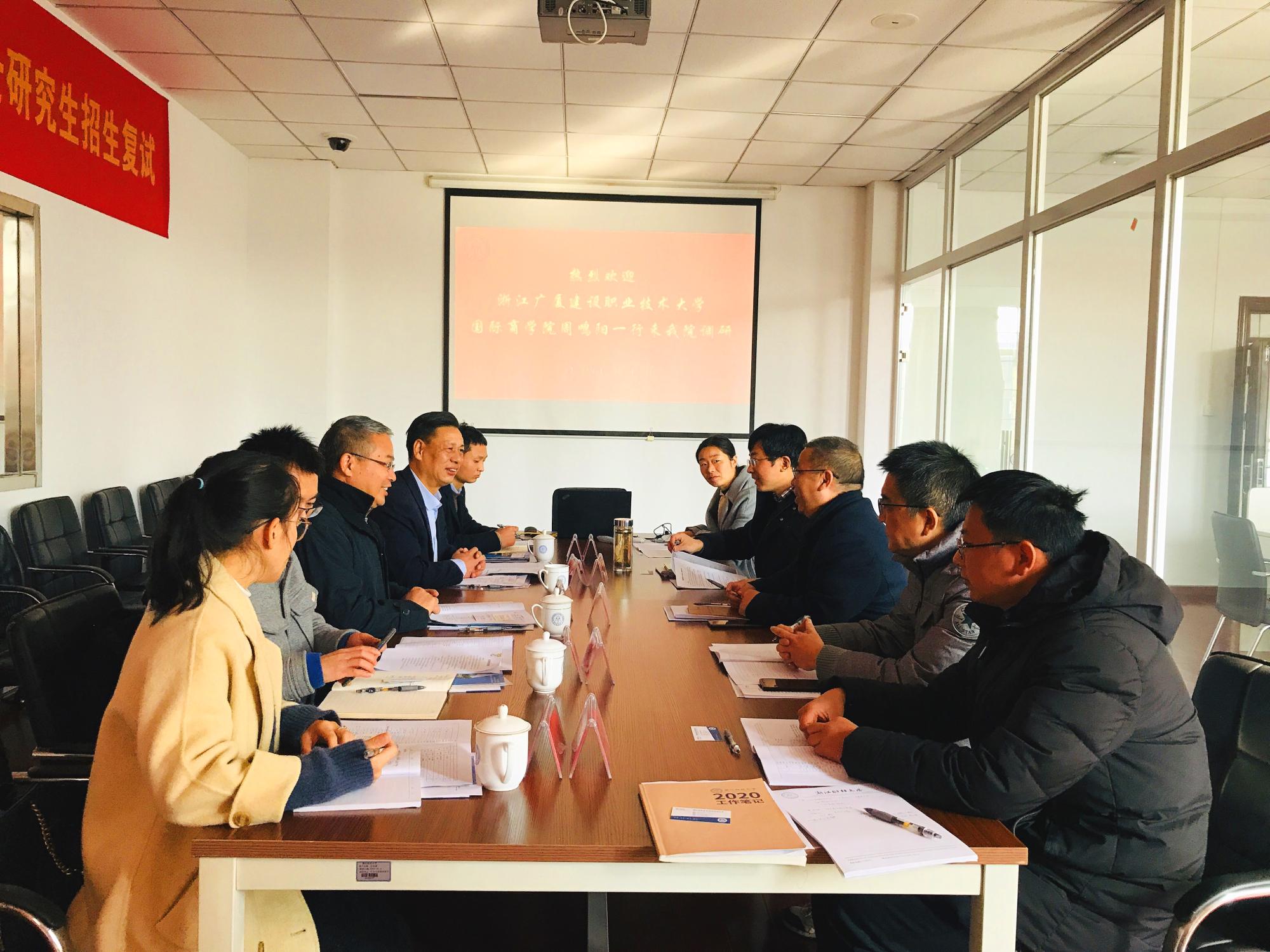12月22日上午,浙江广厦建设职业技术大学国际商学院院长周鸣阳率物流专业一行五来我院调研交流。院党委黄卫华书记、王建明院长、物流系系主任和相关老师热情接待了来访客人。