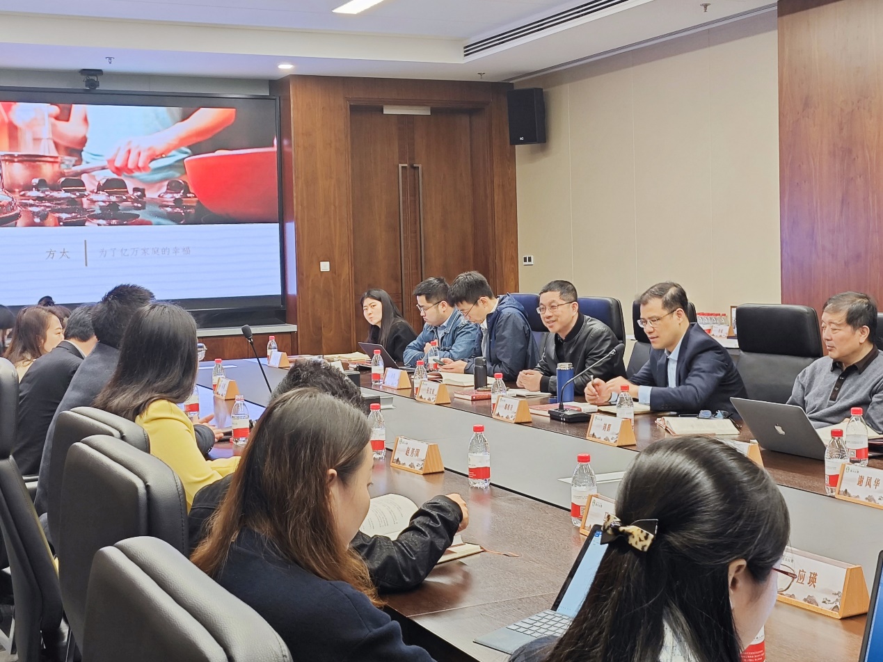 范斌院长就企业发展史、企业文化、员工培养体系等方面展开汇报。企业发展史方面,范院长以形象生动的语言讲述了第一代企业家茅理翔先生创建方太集团前身飞翔集团的过程,以及第二代企业家茅忠群先生带领方太集团化解危机,并最终成为行业引领者的历程。企业文化方面,范院长向调研团队详细解读了“博传统文化之长,兼经营管理之实”的方太集团的组织文化,即“中学明道、西学优术、中西合璧、以道御术”。员工培养方面,范院长指出员工教育的目的是激发员工的工作激情,教育的本质是倡导员工修身心、尽本分,做到五个“一”,即“立一个志,读一本经,改一个过,行一次孝,日行一善”。范院长总结道:“今天方太文化的道是以顾客为中心,以员工为根本。快乐学习,快乐工作,促进人类社会的真善美。”