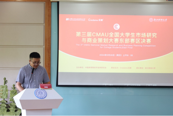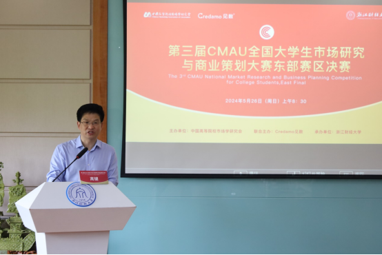 中国高校市场学研究会副会长,浙江工商大学校长,长江学者特聘教授王永贵在开幕式致辞中向脱颖而出参加东部赛区决赛阶段比赛的51支参赛团队表示热烈的祝贺,也向联合主办方单位见数公司、为本次比赛提供命题的各家企业以及承办本次东部赛区决赛的伟德国际1946表示感谢。王永贵教授指出营销学科自诞生之日起就与企业实践活动密不可分,市场调研的本质就是为了帮助企业发现真实的市场问题,解决真实的市场问题。在大数据和人工智能等数智技术日益成为现代商业常态的大背景下,企业的问题也呈现出多元化、复杂化和不确定性等诸多新的特征,传统的调查工具如抽样调查、焦点小组访谈等逐渐被大数据分析、自然语言分析等新技术所代替。这就需要新一代的营销人能够与时俱进改变旧思维,学习新方法,解决真问题,正确对待并处理好老方法与新方法,老问题与新问题之间的关系,而且作为营销专业的学生,更应该尝试走出大学这座象牙塔,走出自己的舒适区去迎接这个新时代给我们带来的新挑战和新机遇 ,CMAU大赛为各位参赛选手通过亲身参与市场研究实战,把理论与现实融会贯通起来,通过撰写商业策划书,使商业实践更具有想象力和创造性。