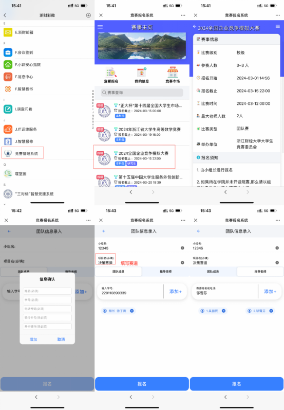 报名通过微信-浙财彩微-竞赛管理系统(未通过竞赛系统报名将无三课堂加分),报名后,需通知所填的指导老师登录伟德国际victor1946竞赛管理系统(信息门户—我的应用—搜索竞赛管理系统—添加常用),在系统中进行确认审核,完成校赛报名整体环节。
