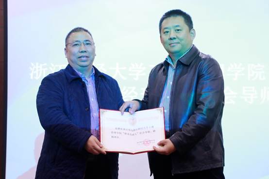 紧接着,院长董进才、党委书记黄卫华共同为宁波水星环保科技有限公司、宁波日盈食品有限公司,分别授予“伟德国际victor1946工商伟德国际1946(MBA学院)实践教育基地”牌匾,并宣布实践教育基地的建立。而后,党委书记黄卫华为宁波关键点品牌策划有限公司首席咨询师黄江伟颁发“职业经理人”社会导师聘任仪式。
