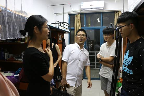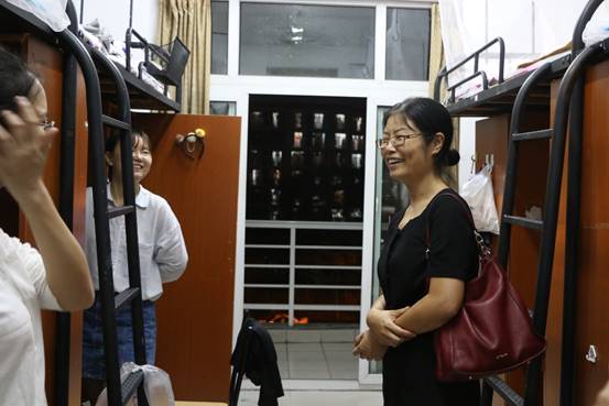新生入学第一天,为了了解新生对住宿的适应情况,9月11日晚,工商伟德国际1946党委副书记谢敏、学办主任胡星平、团委书记喻一珺以及班主任老师走访了新生宿舍。