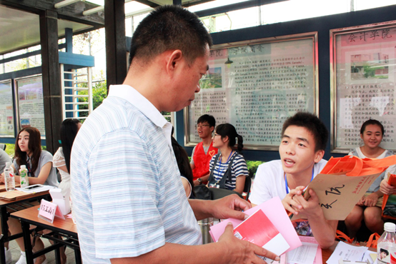 在此次迎新工作中,工作人员分配无间,配合有序地引领新生完成报道的所有程序。学院团委学生会的成员按照会议中的布置安排,帮助新生按照顺序缴费,办理手续,引领新生入住寝室;工商志愿者们也早已在各个路段微笑着守候新生的到来,用热情的服务接待来自全国的学子们,为他们介绍校内的建筑物、生活设施,积极帮助新生担负行李,热诚地指引他们去往寝室。与此同时,学院领导和带班辅导员老师来到文化长廊现场为新生家长解答疑惑。
