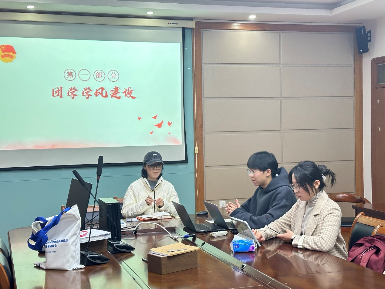 随后,各部门负责人进行了近期的工作汇报并提出了工作中发现的问题以及对于未来工作的规划。团委书记顾晗可老师对各部门的近期表现提出表扬,也提出了各部门应加强宣传工作,加强各部门联动作用的建议。