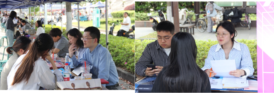 企业招聘会区“π启未来・职掌营销新章”别具一格。“π”寓意职业规划的无限可能,“职掌”既谐音 “掌握”,强化营销掌控力,又体现毕业生从校园到职场的关键转折。30 余家企业摆摊招聘,与学生面对面交流互动,企业能更精准了解求职者能力素质,学生也能深入了解企业文化和职位需求,有效提高招聘效率,实现校园实践与职业未来的无缝对接。