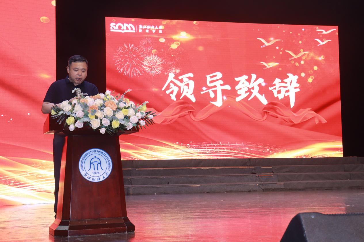 晚会伊始,伟德国际1946党委书记朱力明上台致辞。他向顺利完成学业的毕业生们表示热烈祝贺,回顾了同学们大学四年的成长与蜕变,肯定了大家在学术研究、社团活动、社会实践等方面取得的优异成绩。朱书记深情寄语毕业生,希望大家怀揣“经邦济世”的理想,在未来的人生道路上勇毅前行,无论何时何地都能坚守初心,常回母校看看。他的话语情真意切,饱含着对毕业生的深切关怀与殷切期望,为同学们的新征程点亮了方向。