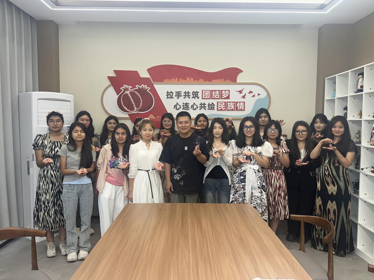 活动现场,新疆各少数民族学生结对创作,在交流中增进理解,维吾尔族学生阿依仙木古丽负责哪吒发型的塑造,哈萨克族同学帕力扎专注火焰纹的绘制,两人反复调整细节,最终呈现出一件兼具民族特色与艺术美感的作品。活动尾声,各族学子手持作品合影留念,背景墙上“中华民族一家亲”的标语与黏土哪吒的火焰纹交相辉映,成为民族团结的生动注脚。