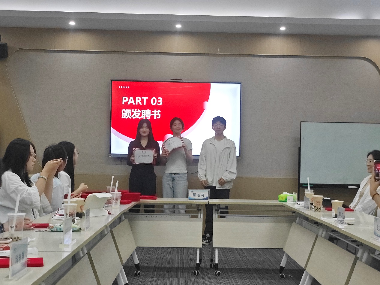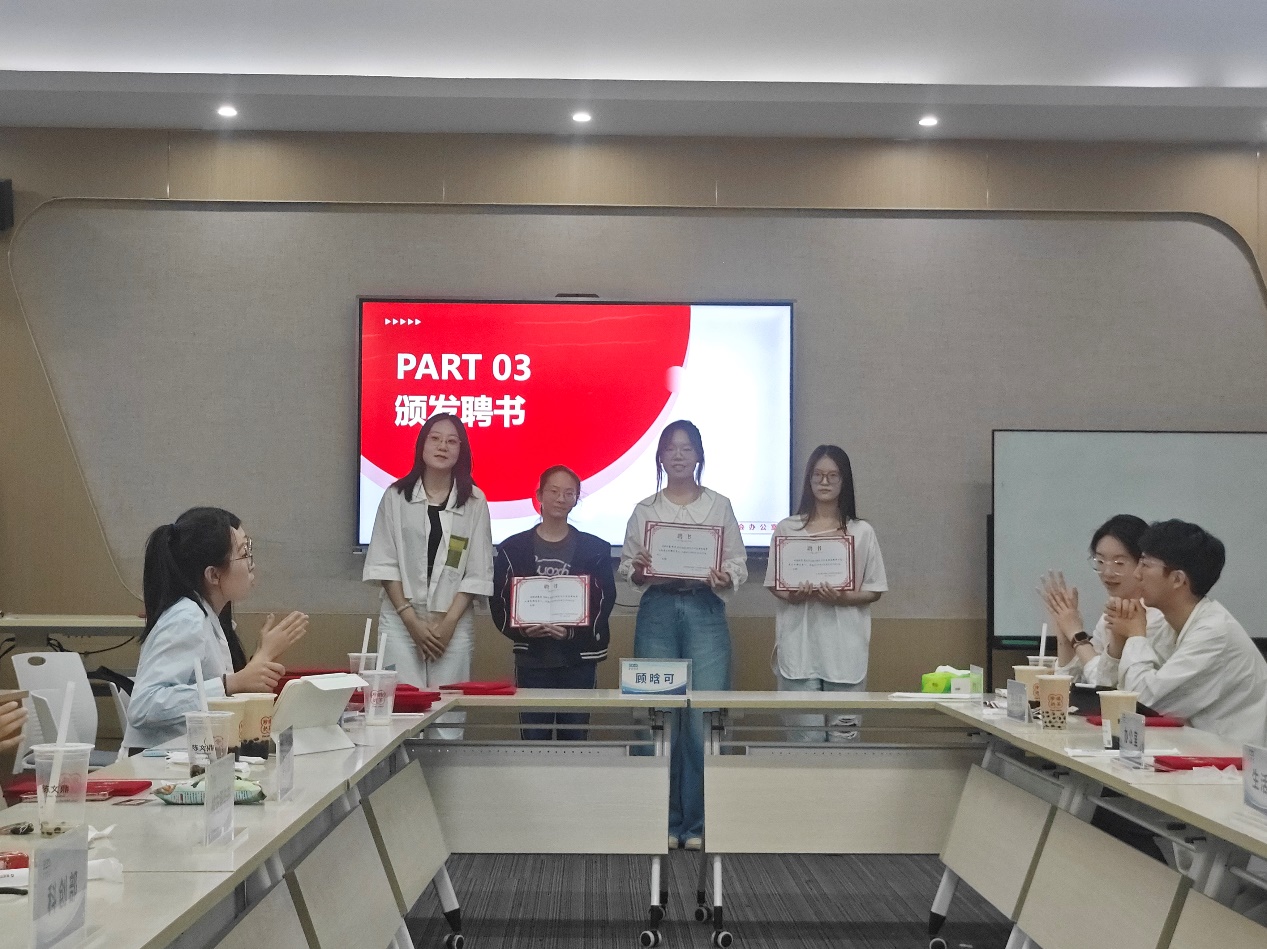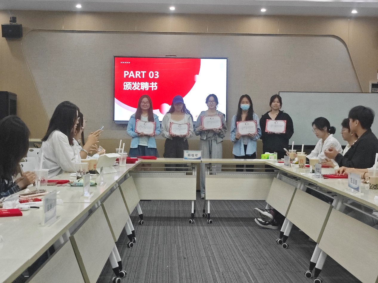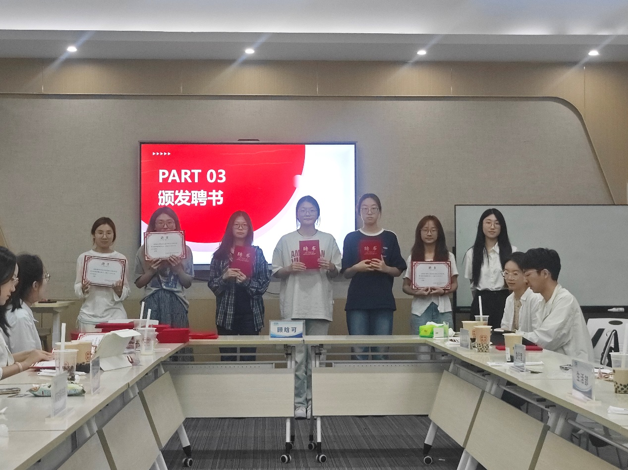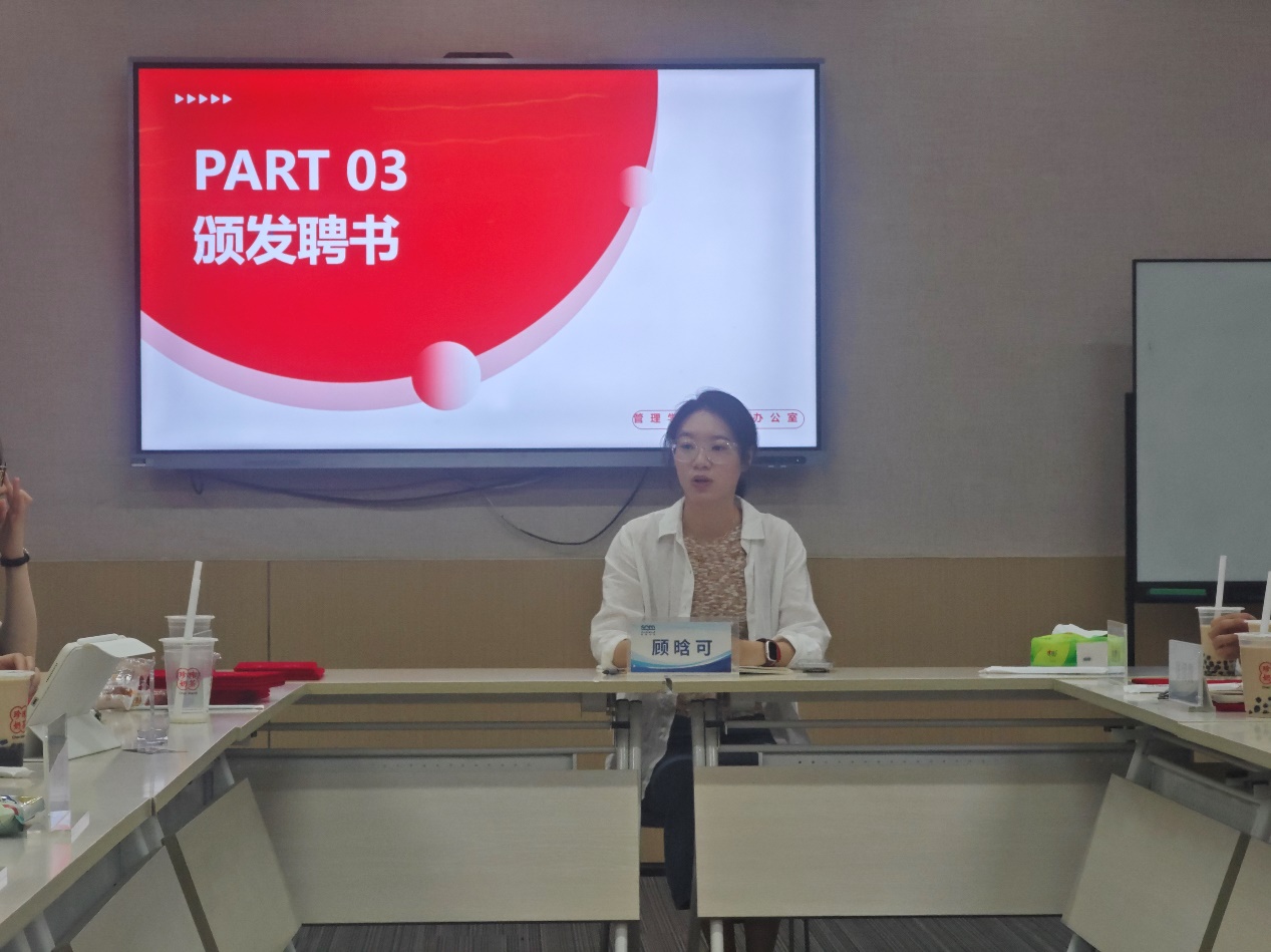 述职汇报结束后,由顾晗可老师为各中心分管主席授予聘书,再由各中心分管主席向各部门负责人授予聘书。