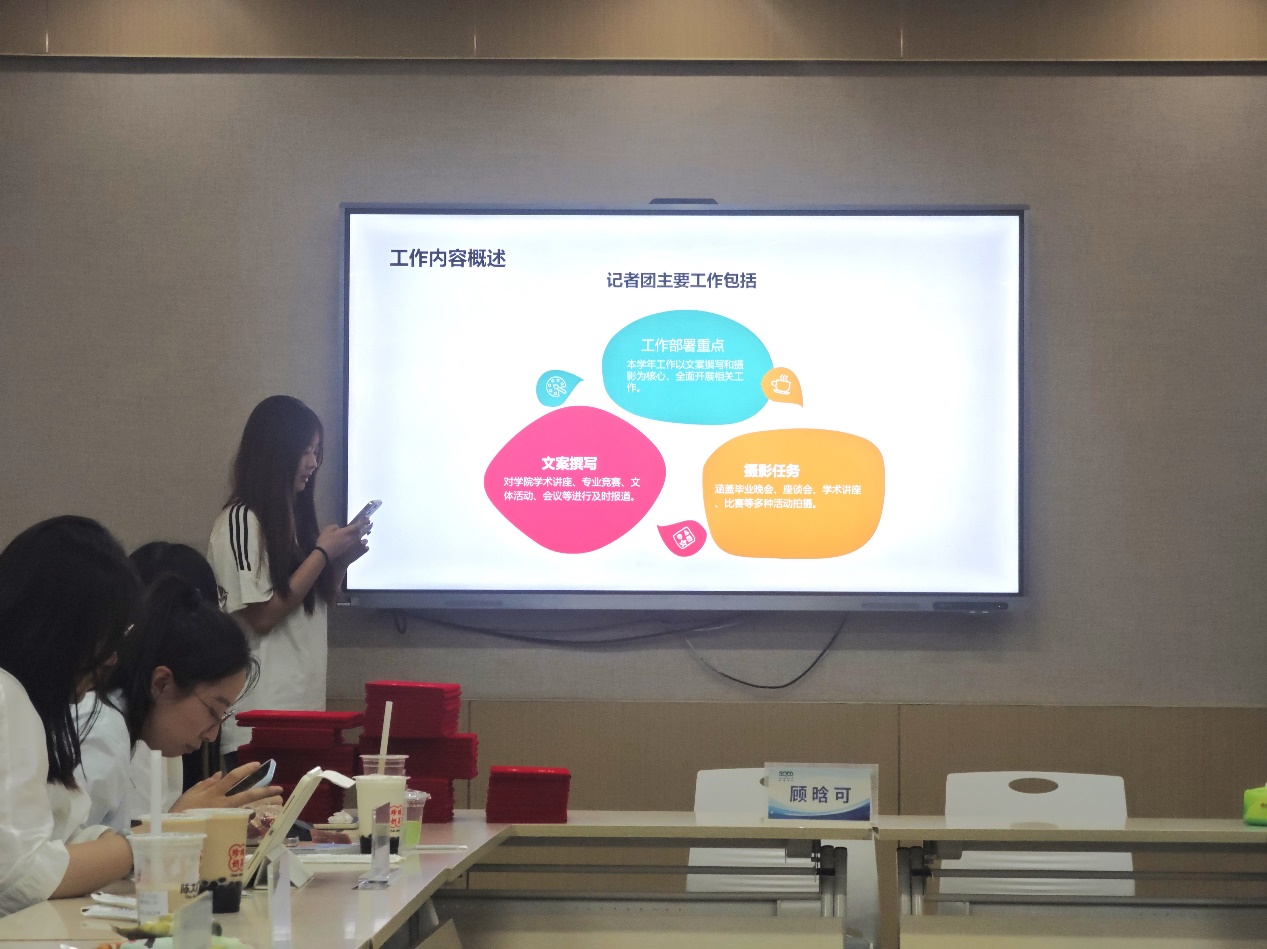 为持续优化学生组织服务效能,深化内部改革进程,伟德国际1946于5月29日,在学院楼411教室举行年度团委学生会述职大会。学院团委书记顾晗可老师及各中心相关负责人出席大会,由各部门负责人进行年度总结汇报。