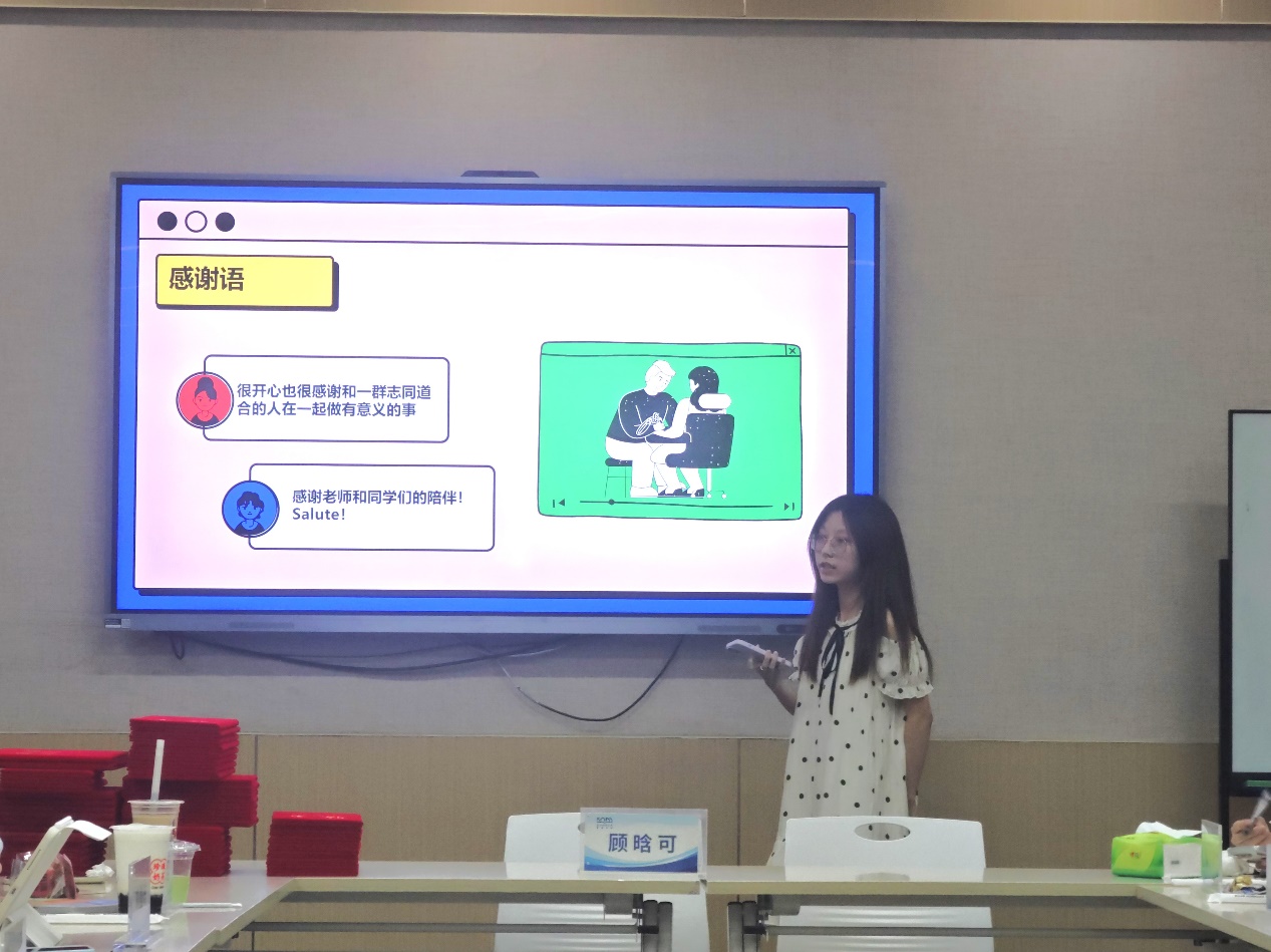 会议最后,顾晗可老师首先对团委学生会各部门负责人一年以来的辛勤工作表示感谢,充分肯定本年度工作成果。她表示,本年度工作实践使全体负责人业务能力显著精进,在组织、沟通和宣传等方面工作有明显提升。