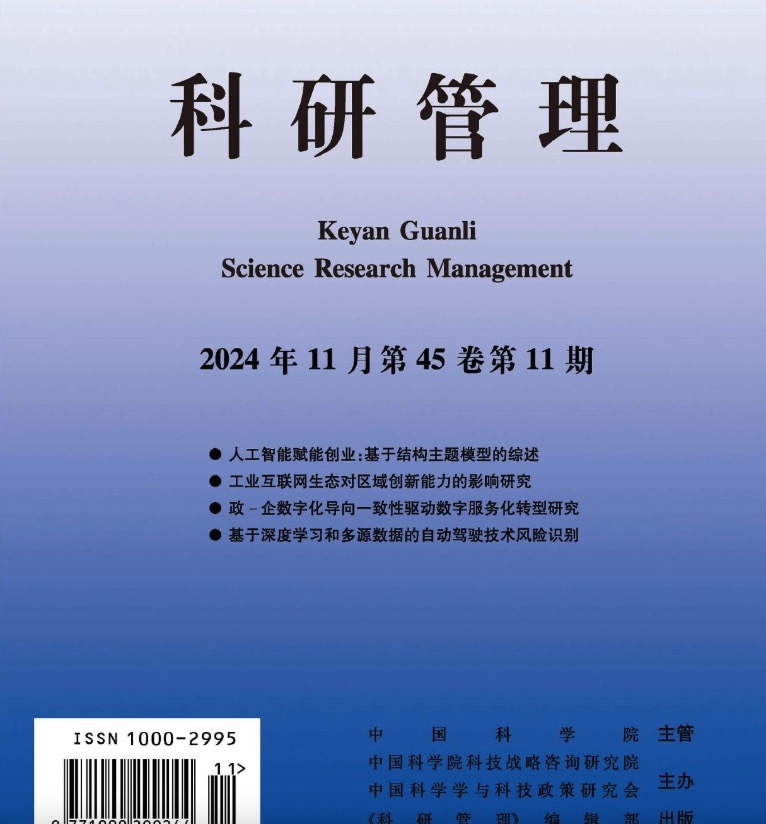 我院2022级研究生张新悦在导师周丹副教授的指导下,与戴维奇教授、中国科学院科技战略咨询研究院郭京京研究员合作,共同完成了《政-企数字化导向一致性驱动数字服务化转型研究》论文。该研究成果被《科研管理》杂志采纳,并被评选为2024年第11期封面论文。《科研管理》是国内外公开发行的学术刊物,是国家自然科学基金委员会管理科学部遴选和认定的管理科学A级重要期刊。