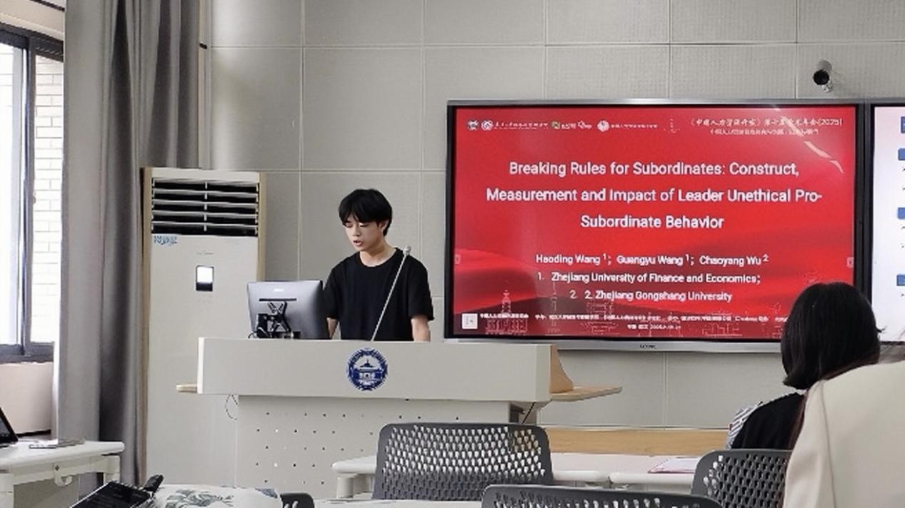 近日,2025年中国人力资源开发学术年会在湖北省武汉市隆重举行。本次年会由中国人力资源开发研究会主办,武汉大学经济与伟德国际1946与《中国人力资源开发》杂志社联合承办,以“中国人力资源管理研究与实践:回顾与展望”为主题,汇聚了全国各地人力资源领域的学者和实践者。我院2024级研究生汪光宇与导师董进才教授、王浩丁老师合作的论文《Breaking Rules for Subordinates: Construct, Measurement, and Impact of Leader Unethical Pro-Subordinate Behavior》受邀在年会上进行了论文汇报。