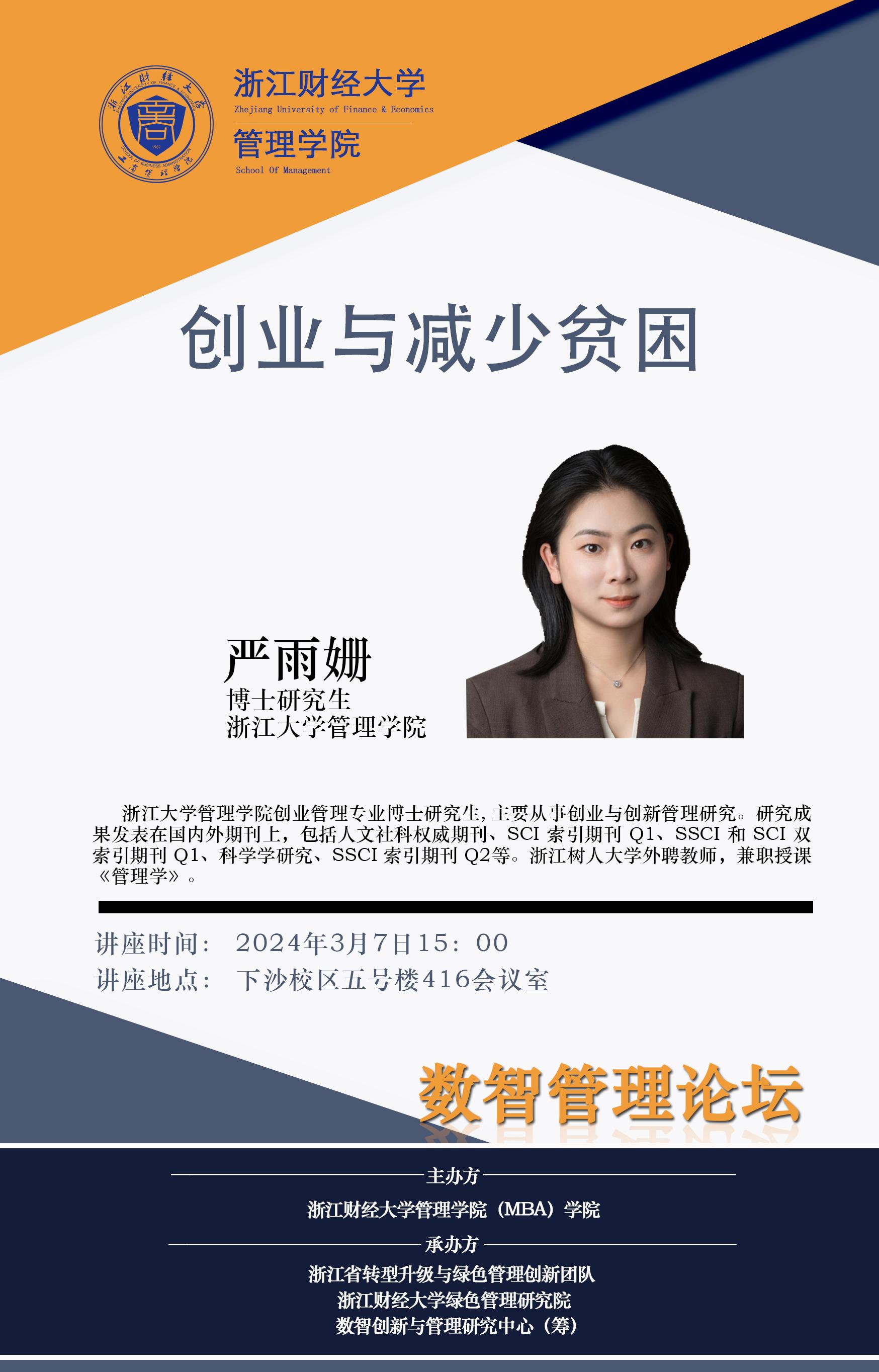 【院级研究中心讲座预告】严雨姗:创业与减少贫困