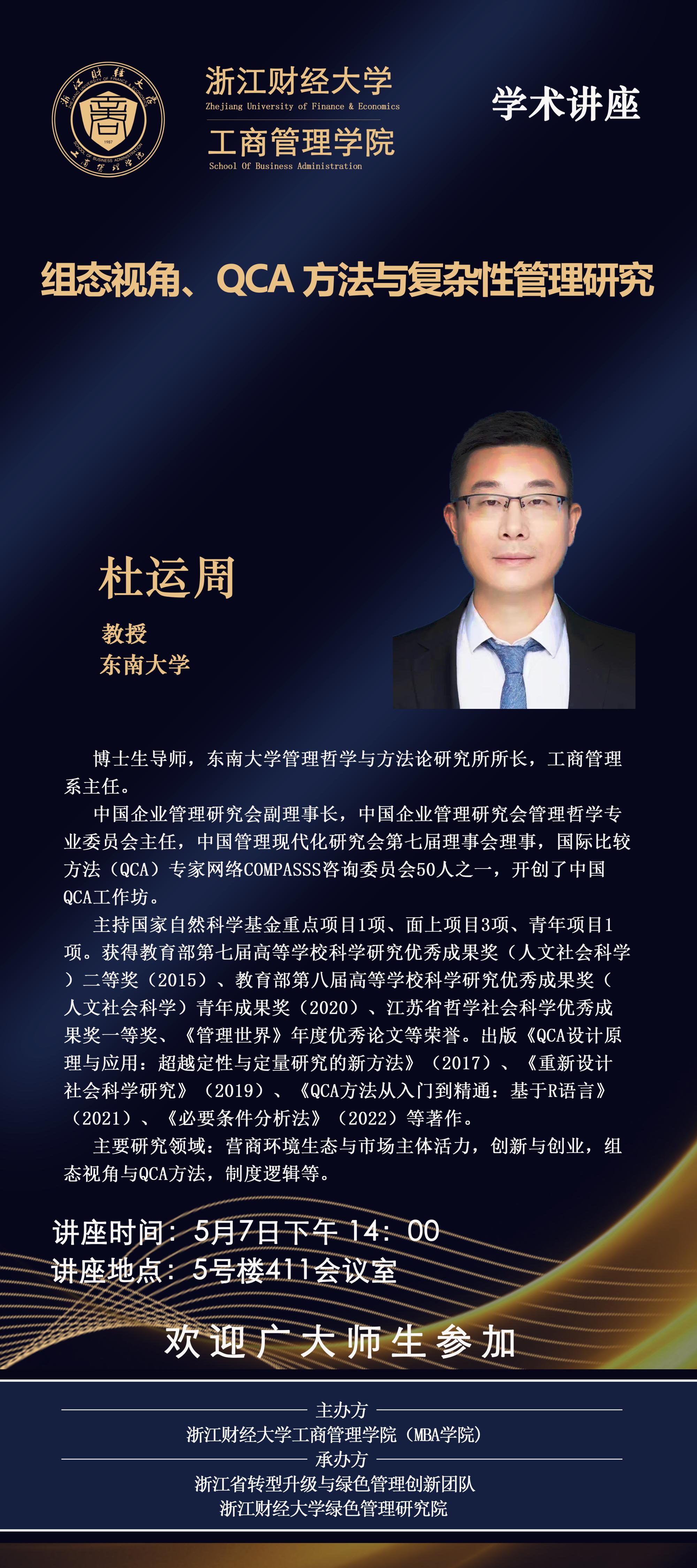 【讲座预告】杜运周教授:组态视角、QCA方法与复杂性管理研究