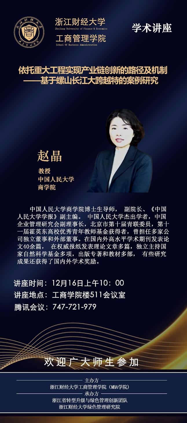 【讲座预告】赵晶教授:依托重大工程实现产业链创新的路径及机制 ——基于螺山长江大跨越特的案例研究