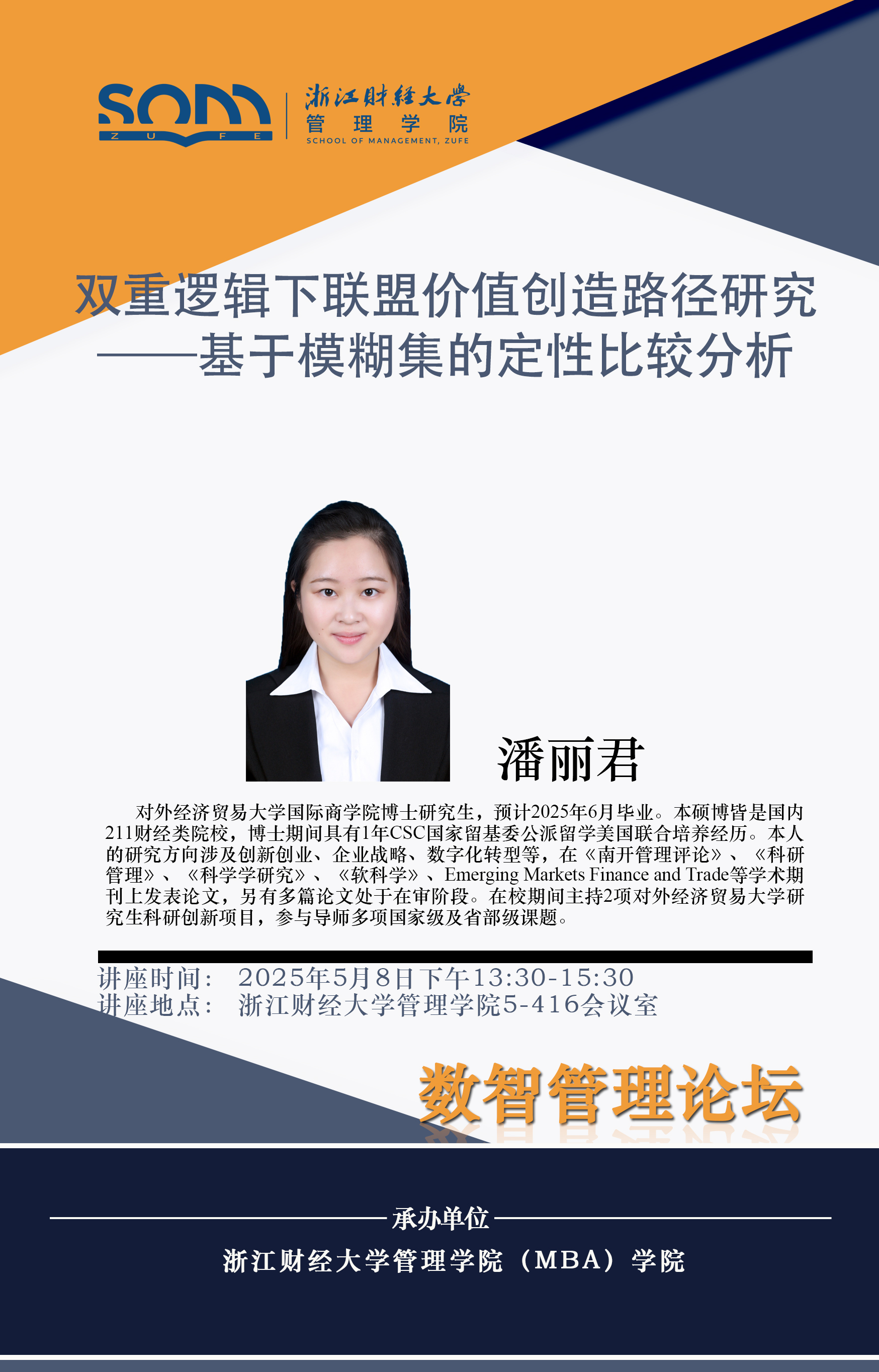 伟德国际1946新财经战略系列学术活动2025年第29期【学术报告】潘丽君:双重逻辑下联盟价值创造路径研究——基于模糊集的定性比较分析