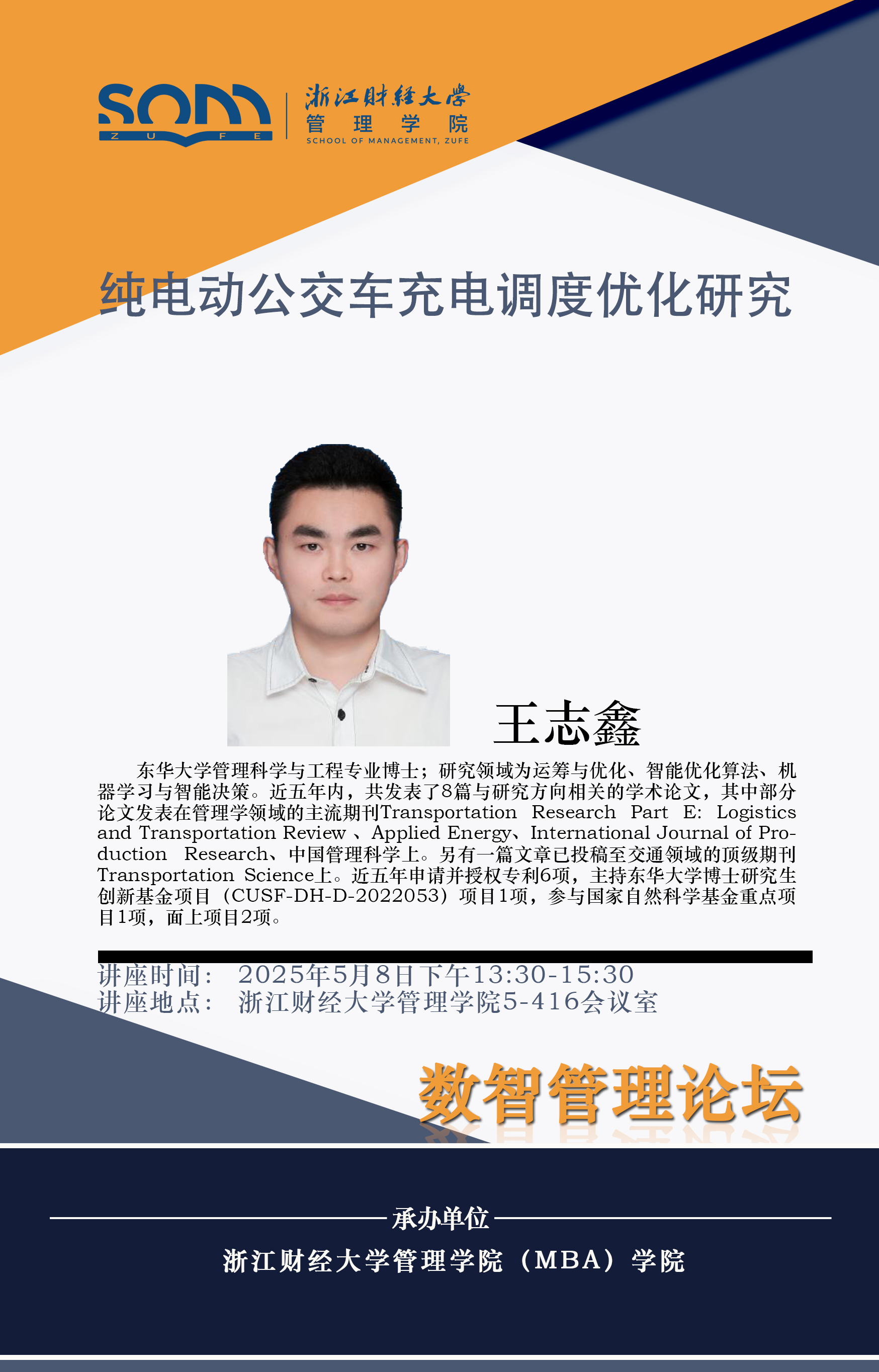 伟德国际1946新财经战略系列学术活动2025年第28期【学术报告】王志鑫:纯电动公交车充电调度优化研究