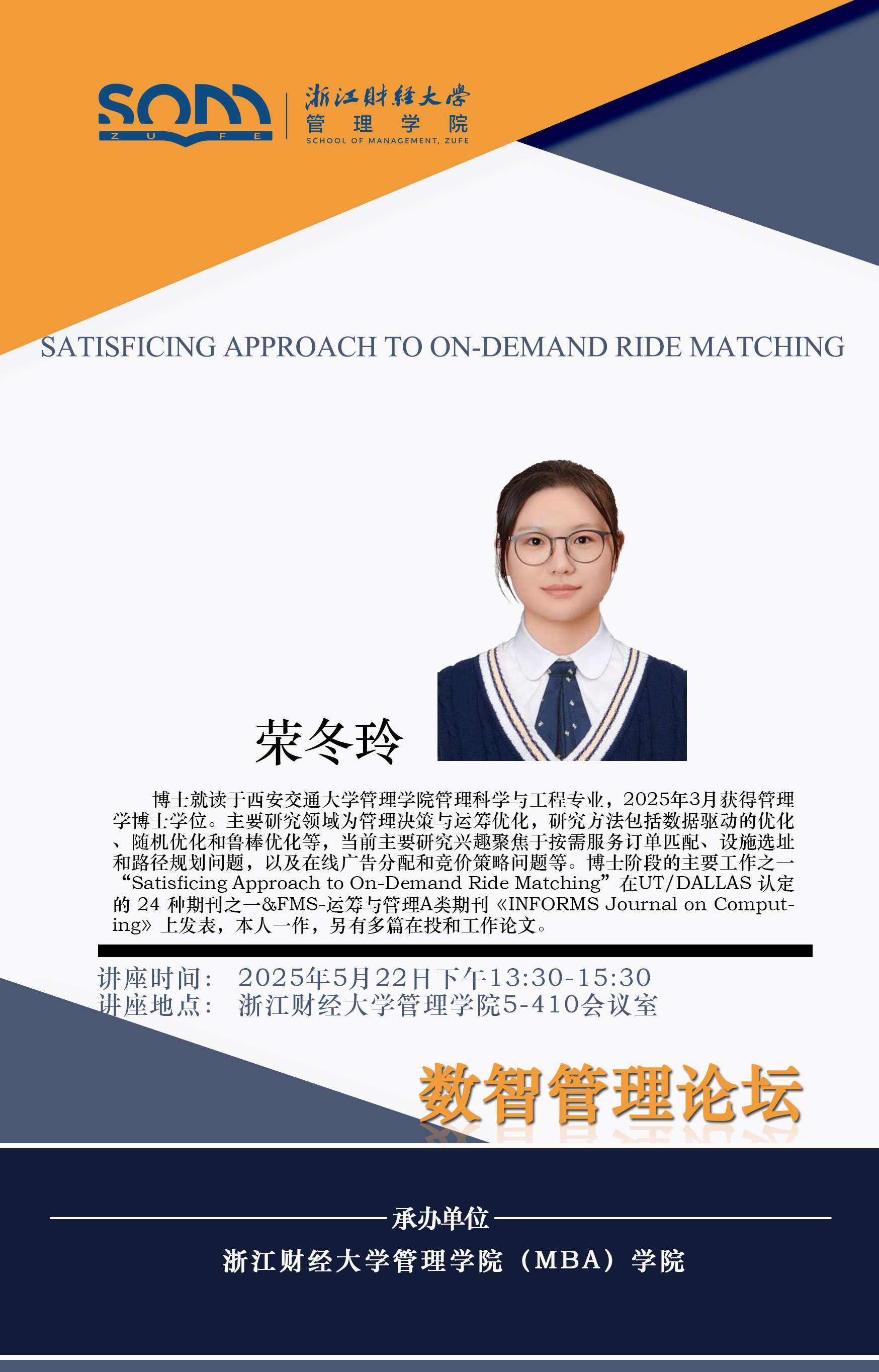 伟德国际1946新财经战略系列学术活动2025年第37期【学术报告】荣冬玲:Satisficing Approach to On-Demand Ride Matching